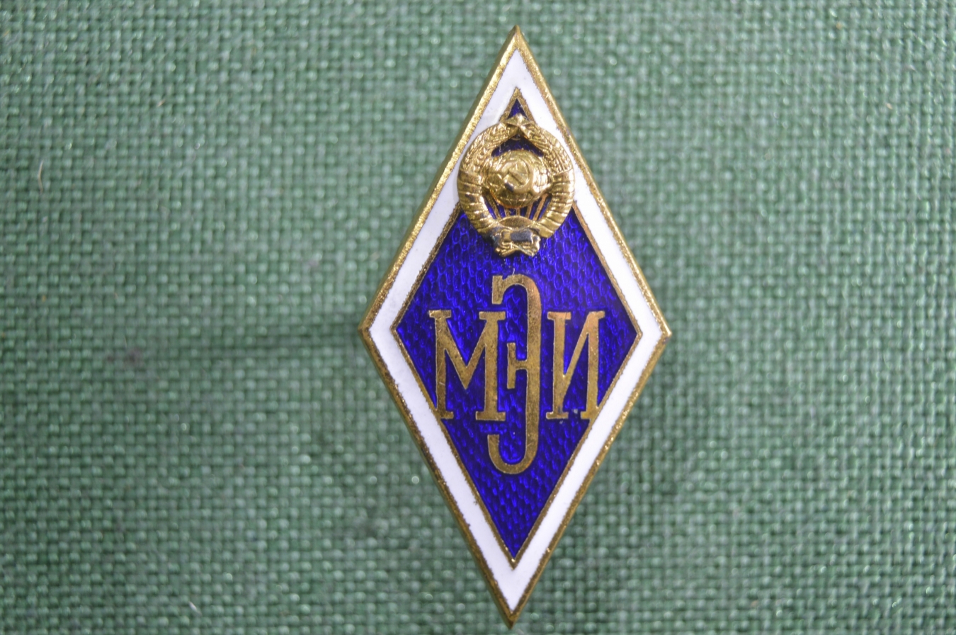 Ромб МЭИ Московский Энергетический Институт. Накладной, тяжелый металл, винт. ММД, СССР.