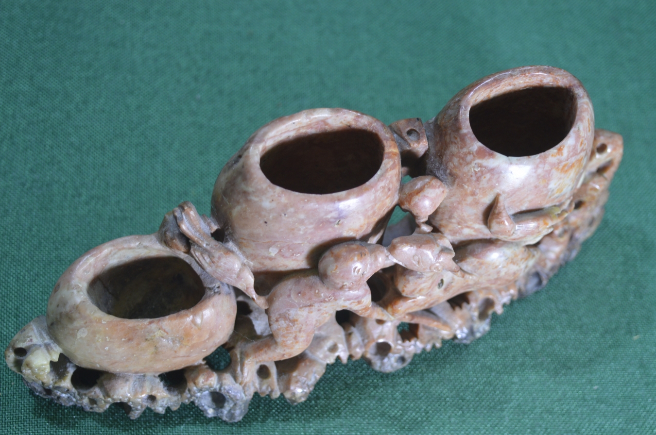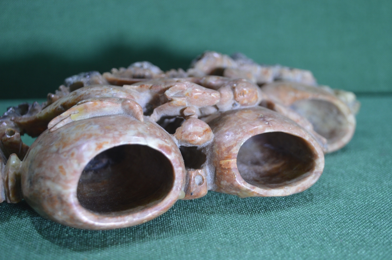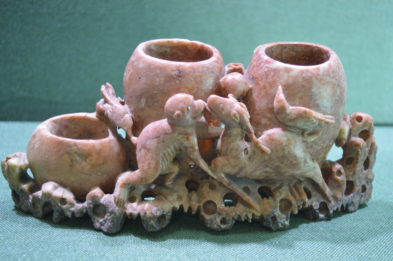 Каменная настольная карандашница "Обезьяна и олень". Поделочный камень, резьба.