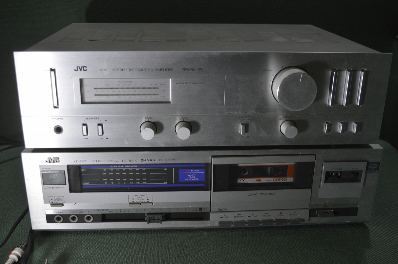 Усилитель JVC A-X1, кассетная дека JVC KD-D20. Стерео. Сделано в Японии.