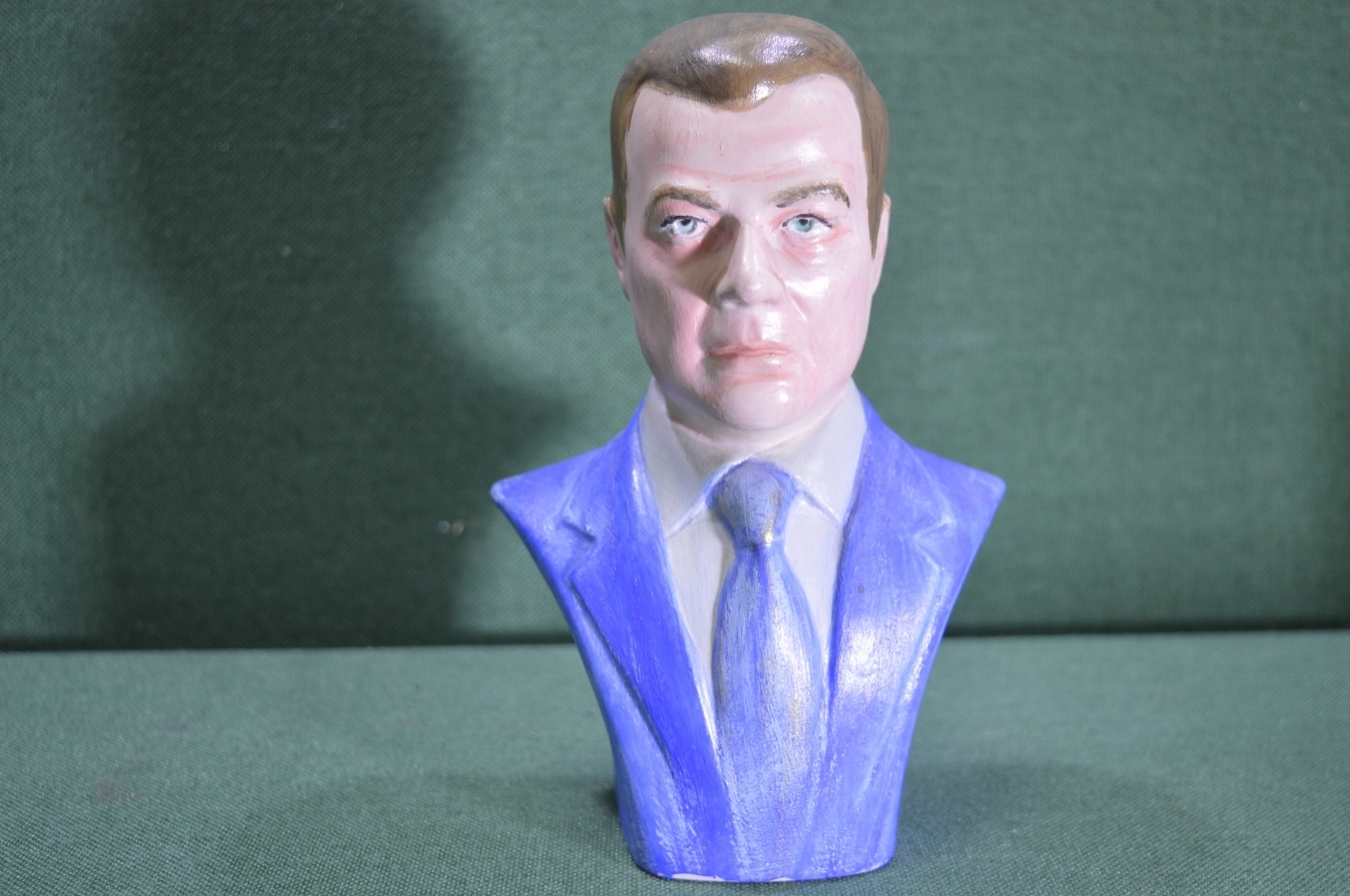 Бюст "Дмитрий Анатольевич Медведев". Авторский. Керамика. Роспись. Россия.