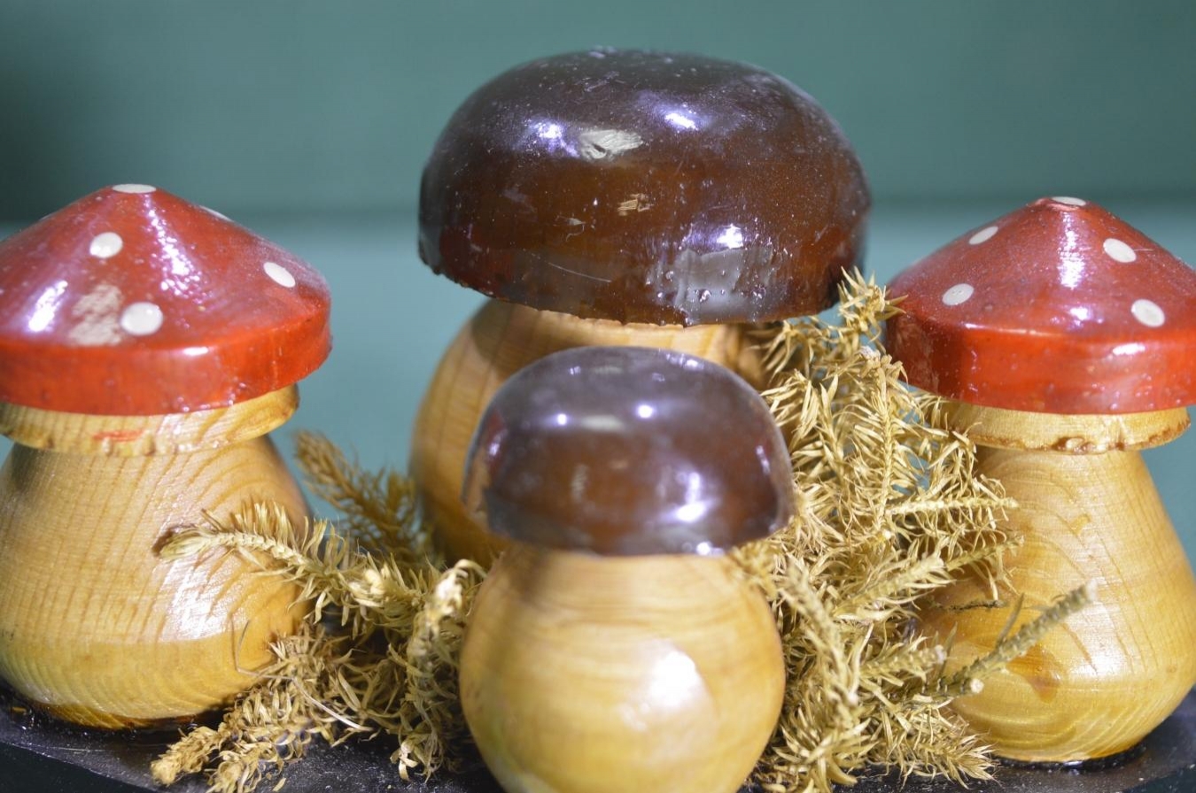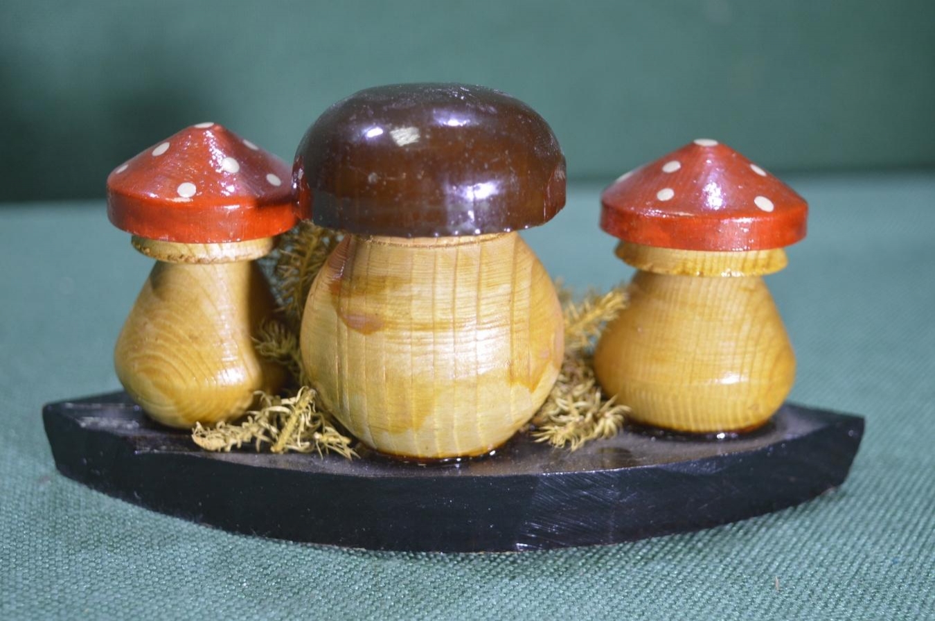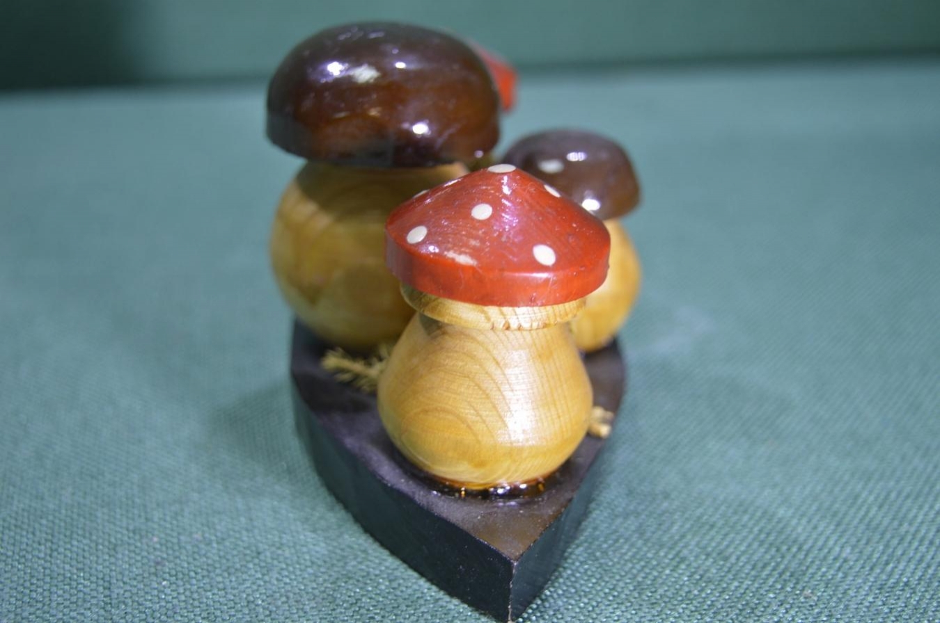 Настольная деревянная композиция "Грибы грибница". Роспись. Дерево. СССР.