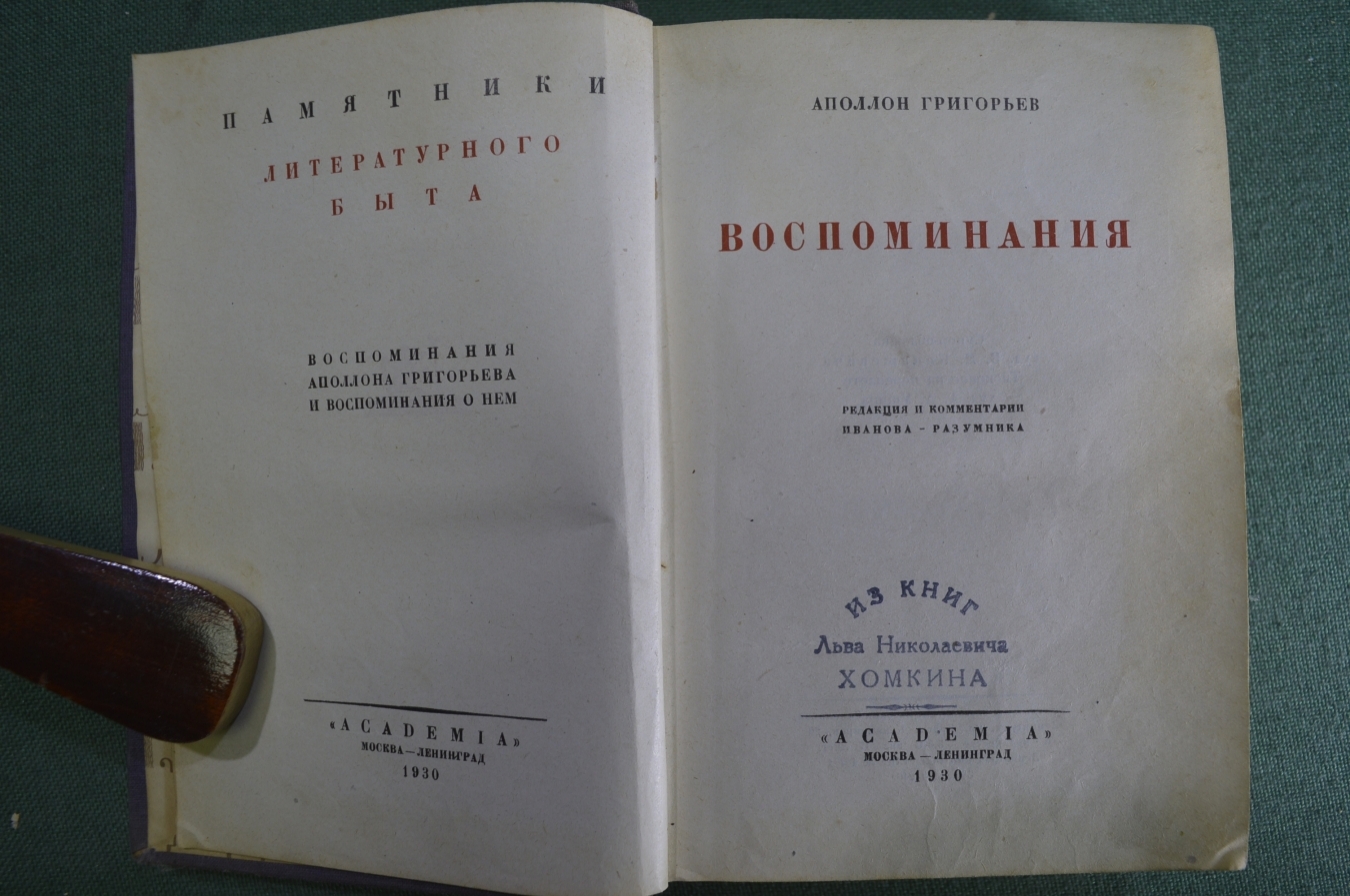 Книга "Воспоминания. Аполлон Григорьев". Академия, 1930 год.