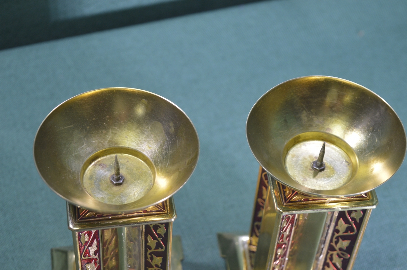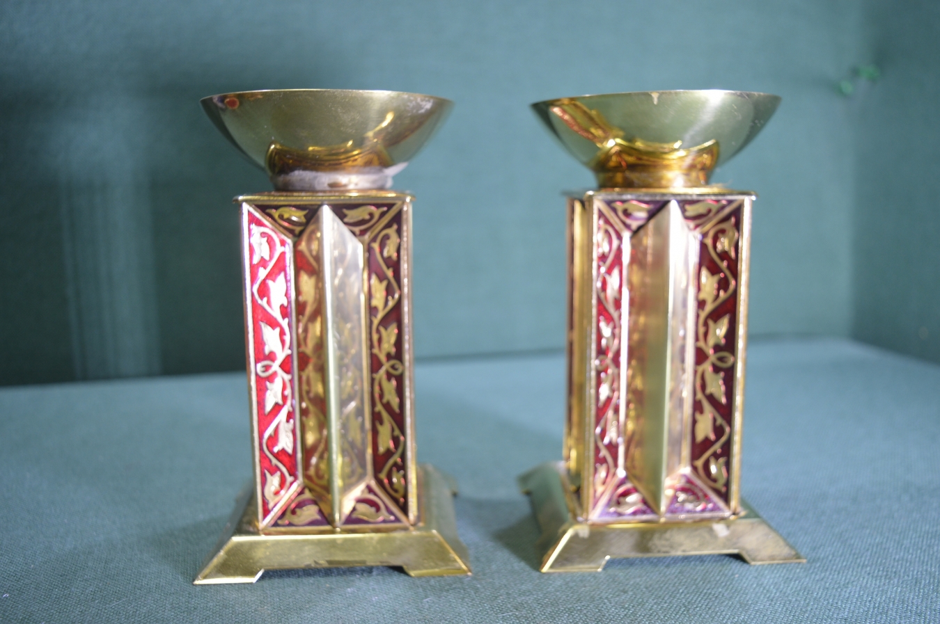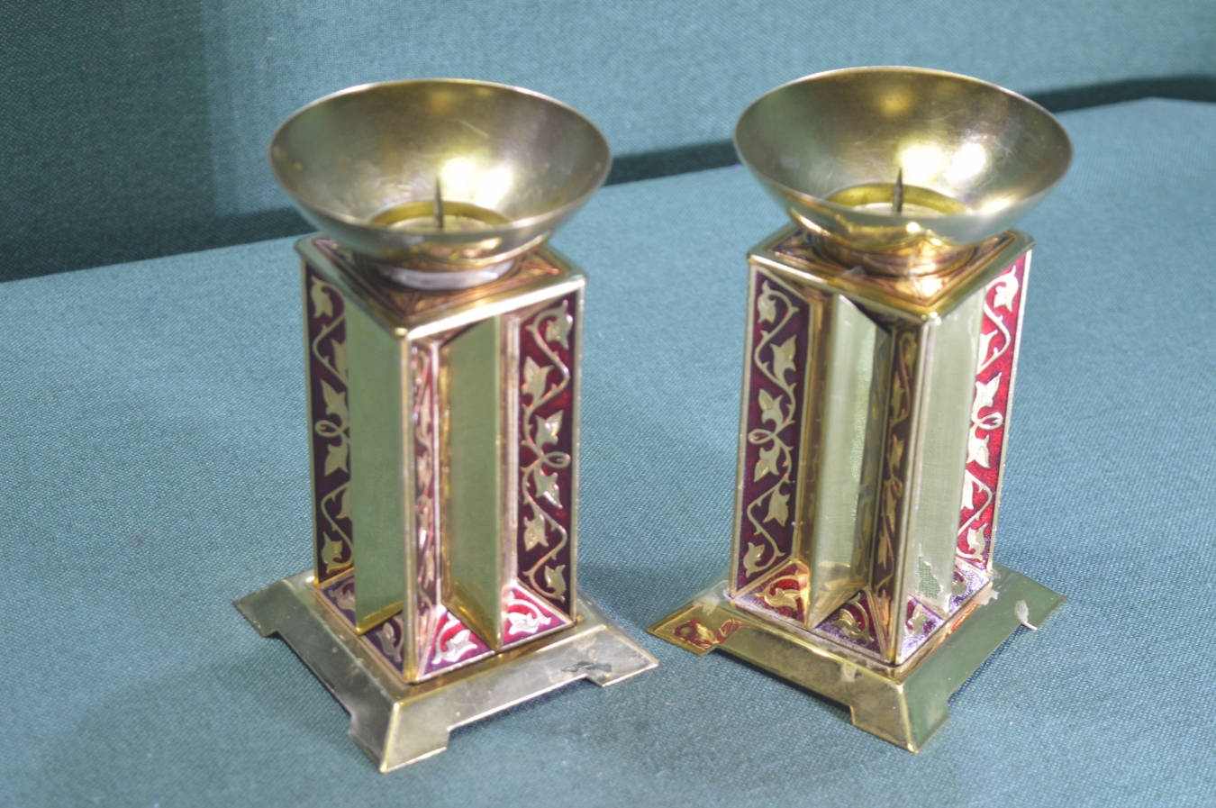 Подсвечники латунные парные "Модерн". Латунь. Эмаль. Клеймо. СССР. #U