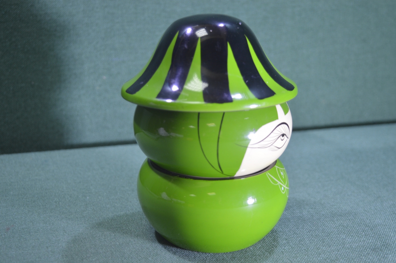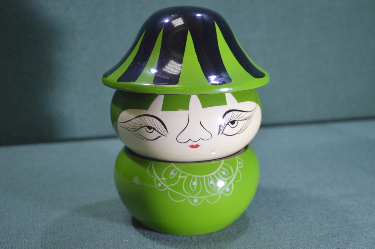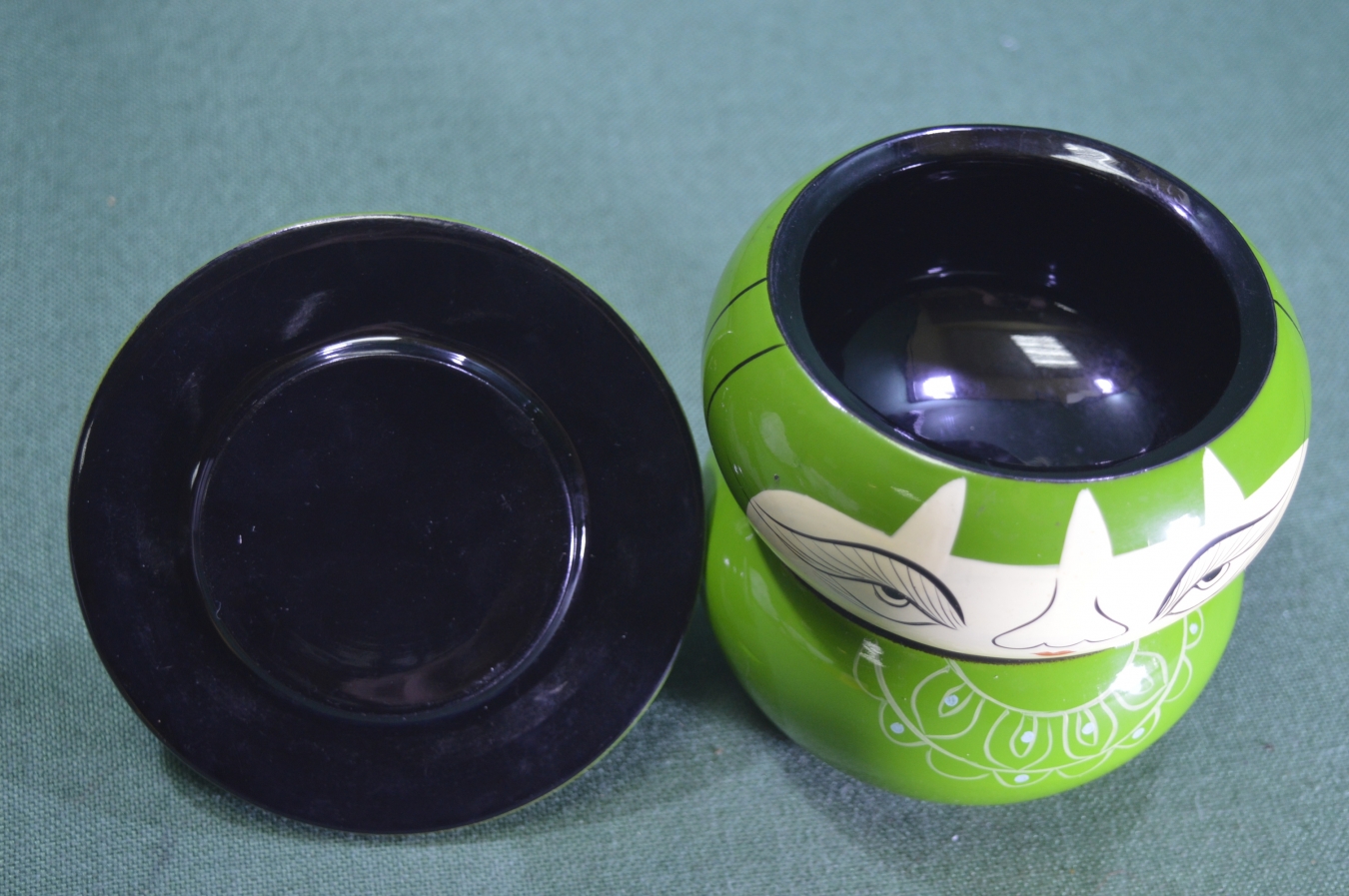 Шкатулка двухуровневая "Лицо". Лак. Папье-маше. Винтаж. Вьетнам. #U