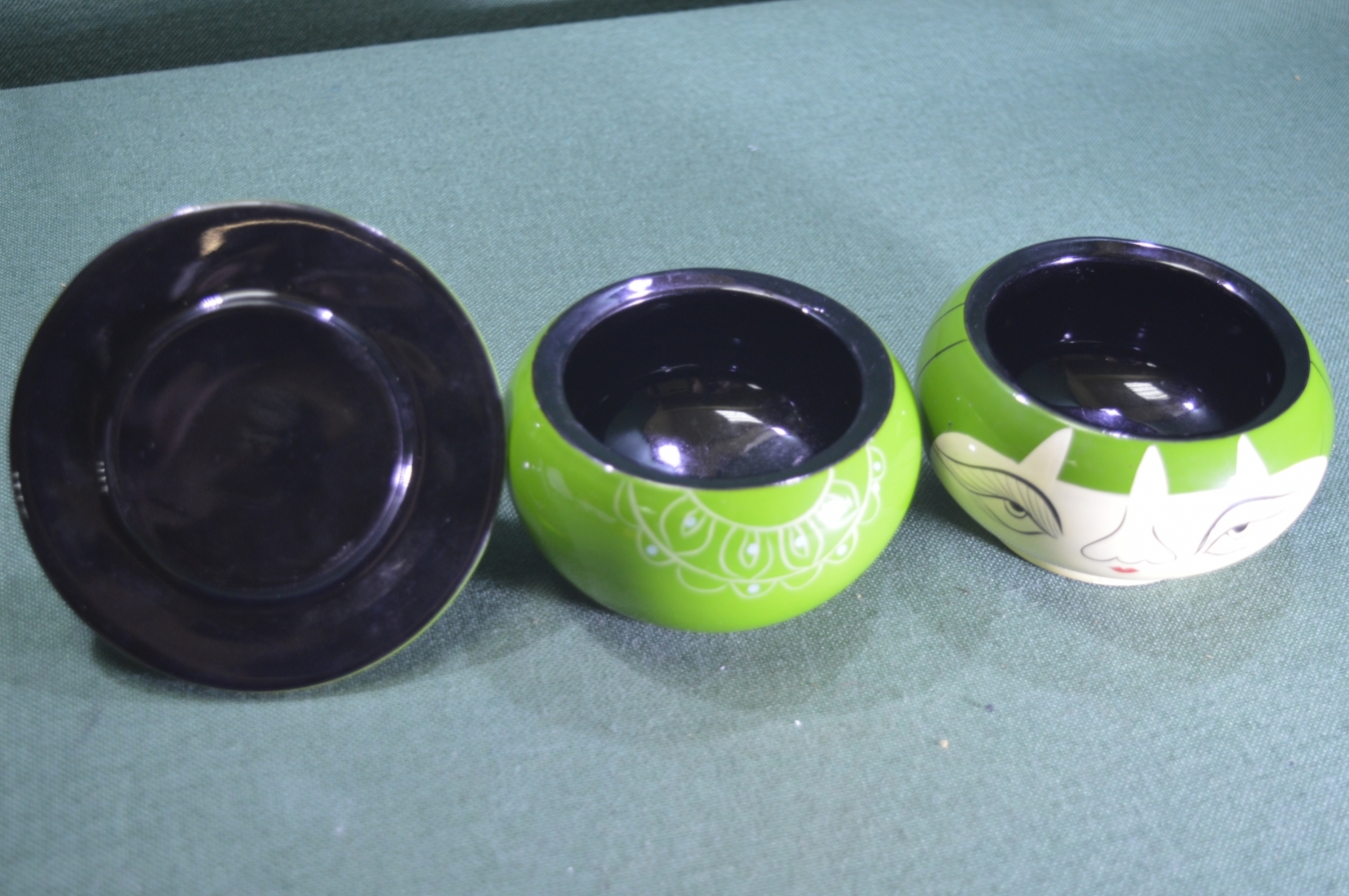 Шкатулка двухуровневая "Лицо". Лак. Папье-маше. Винтаж. Вьетнам.
