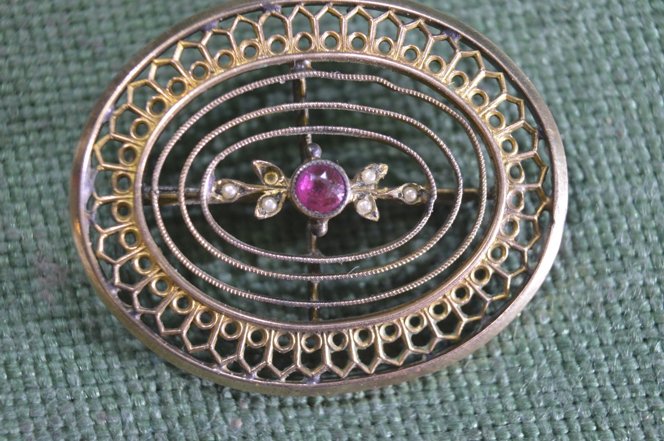 Брошь брошка старинная с камнями "Модерн". Латунь. Царская Россия.