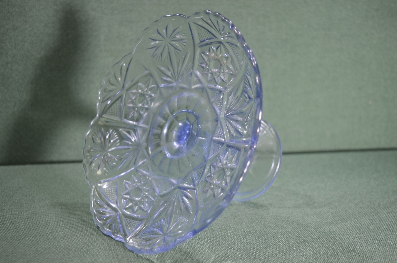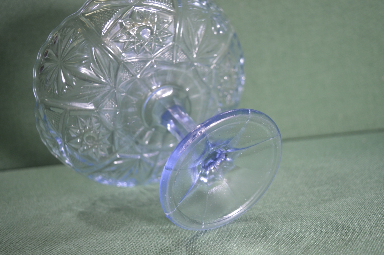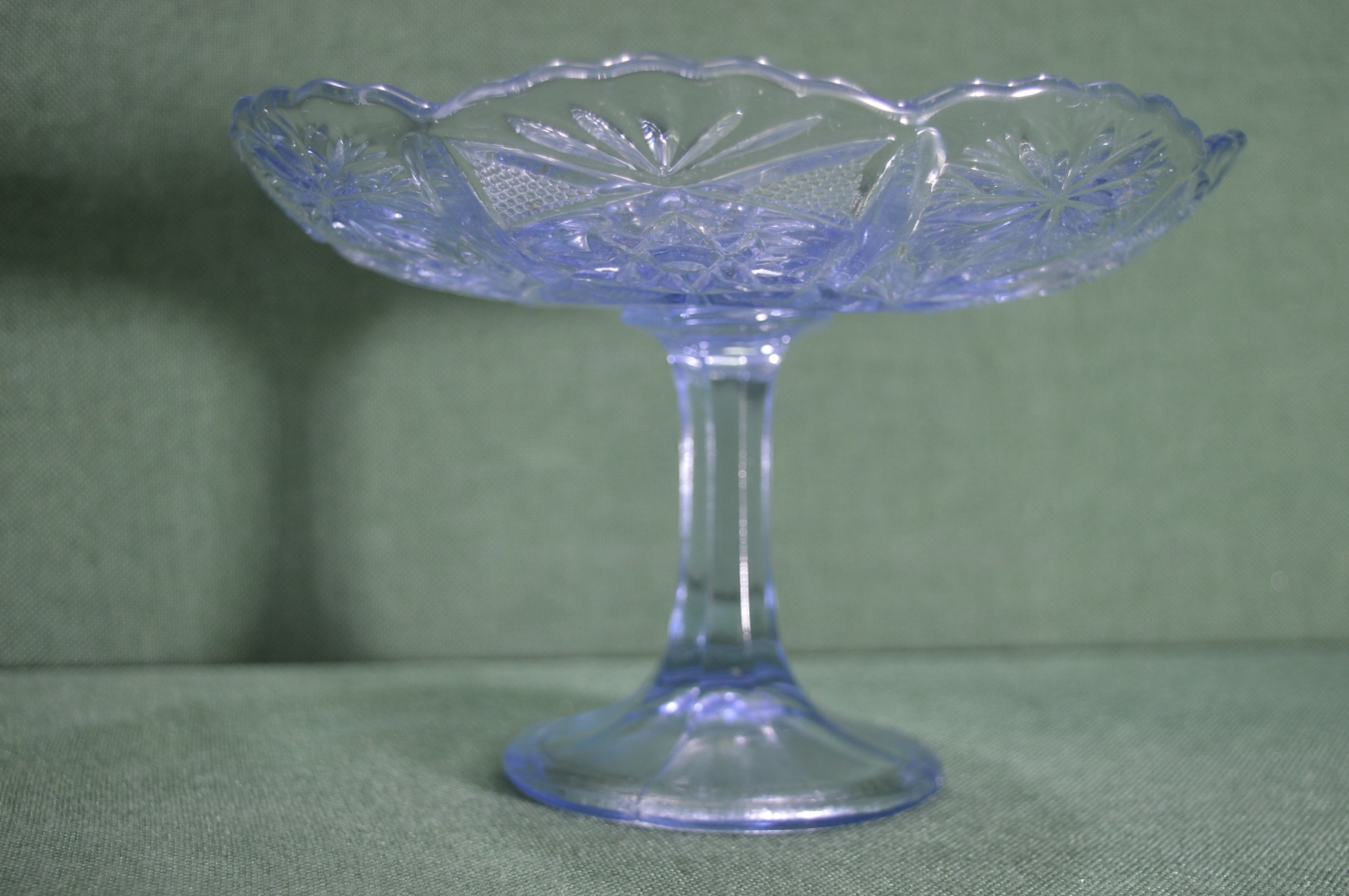 Ваза, конфетница, фруктовница на ножке, стеклянная. Голубое стекло. СССР.