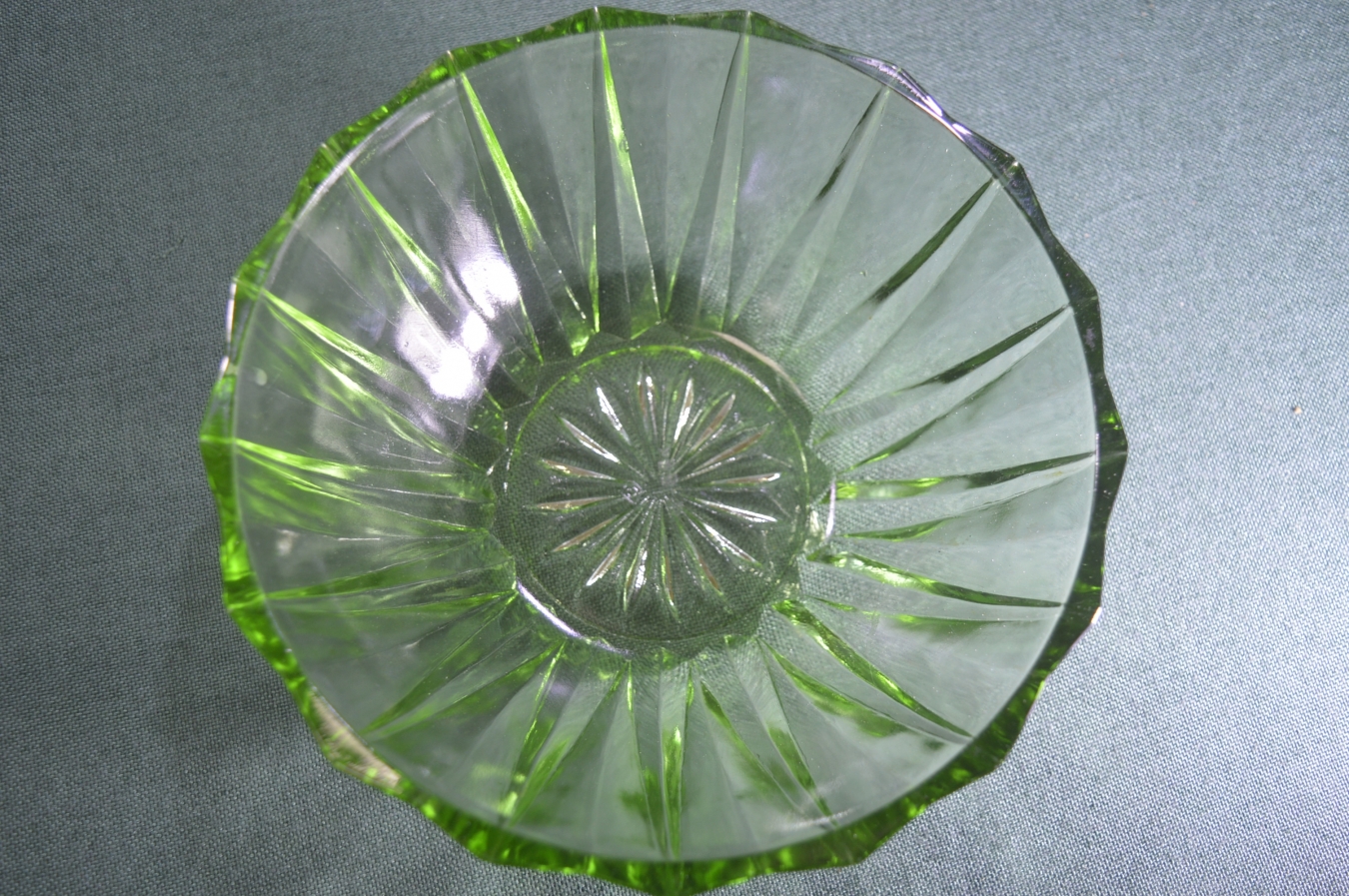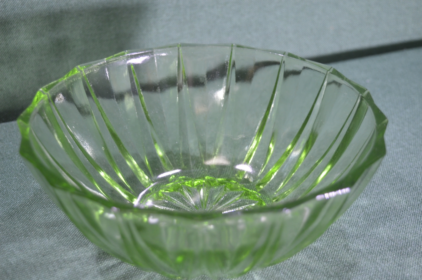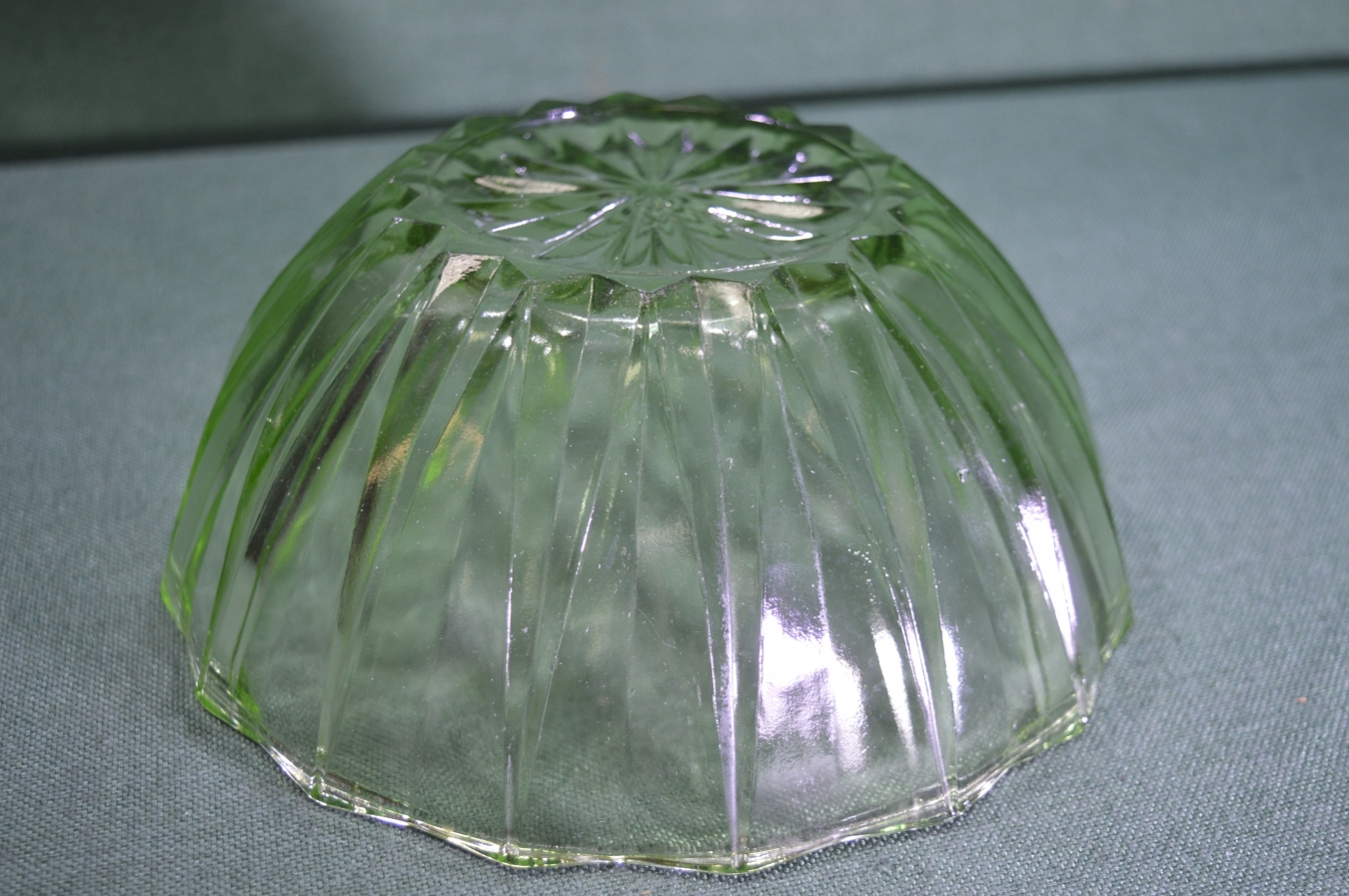 Миска стеклянная для конфет, фруктов. Зеленое стекло. СССР.