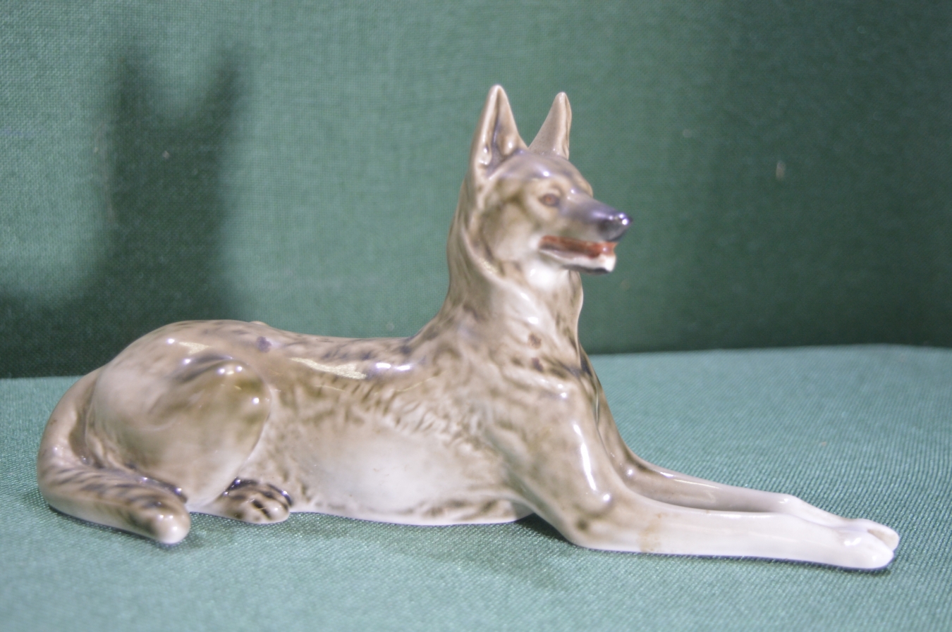 Фарфоровая статуэтка "Немецкая овчарка собака". Фарфор. ЛФЗ, СССР.