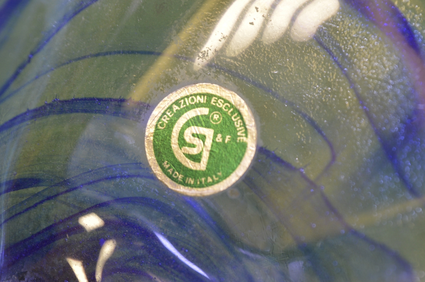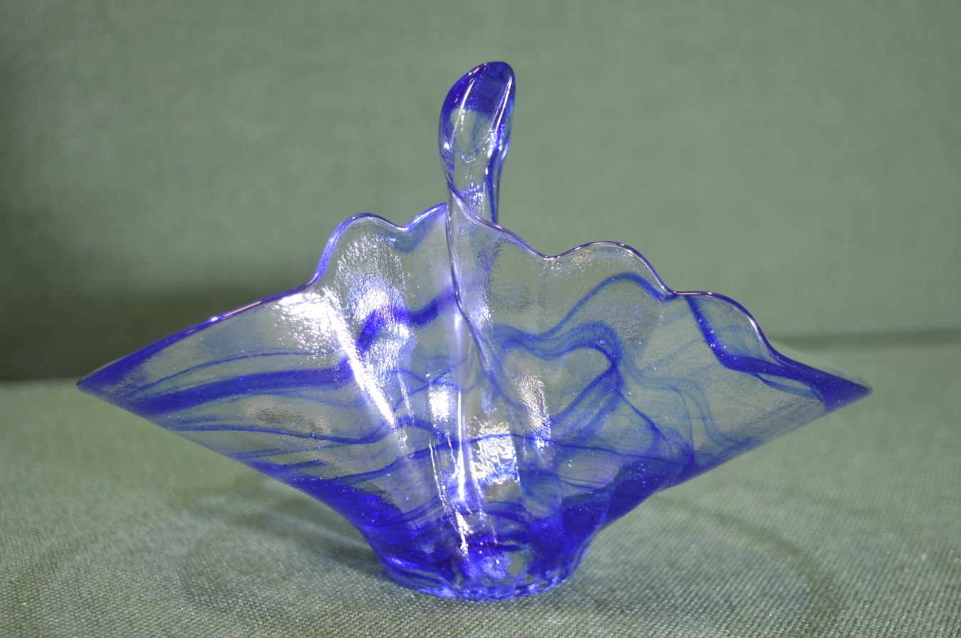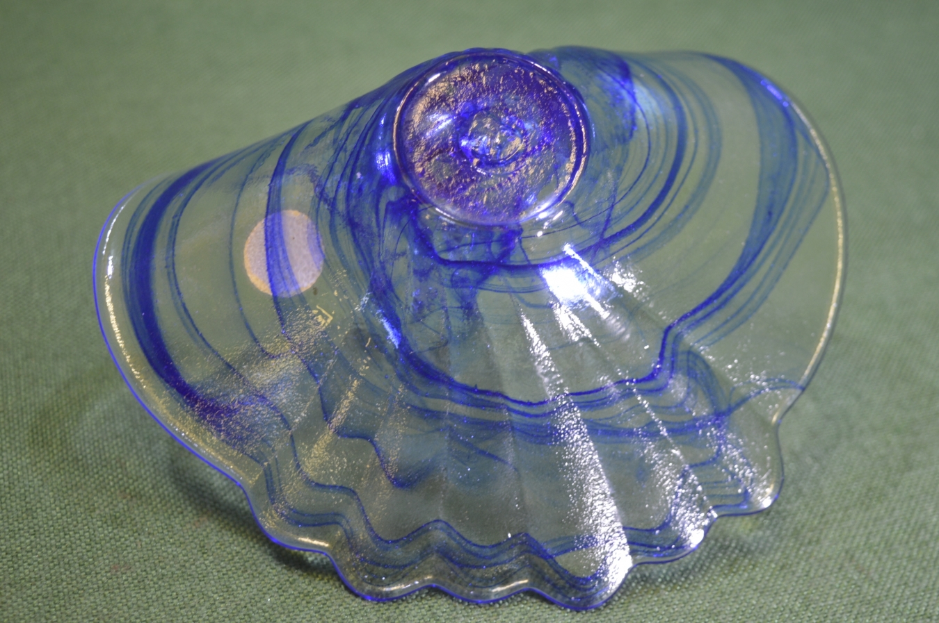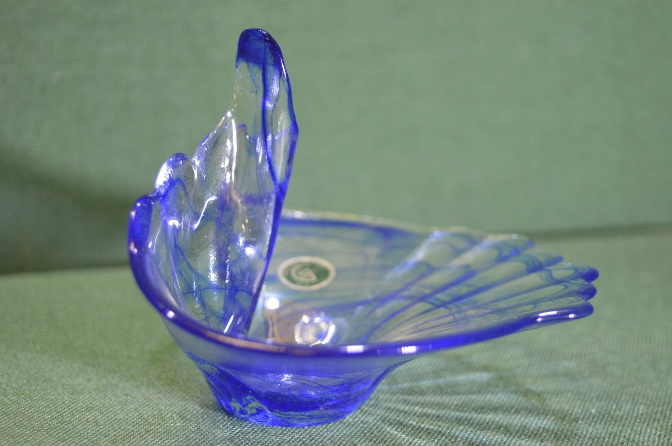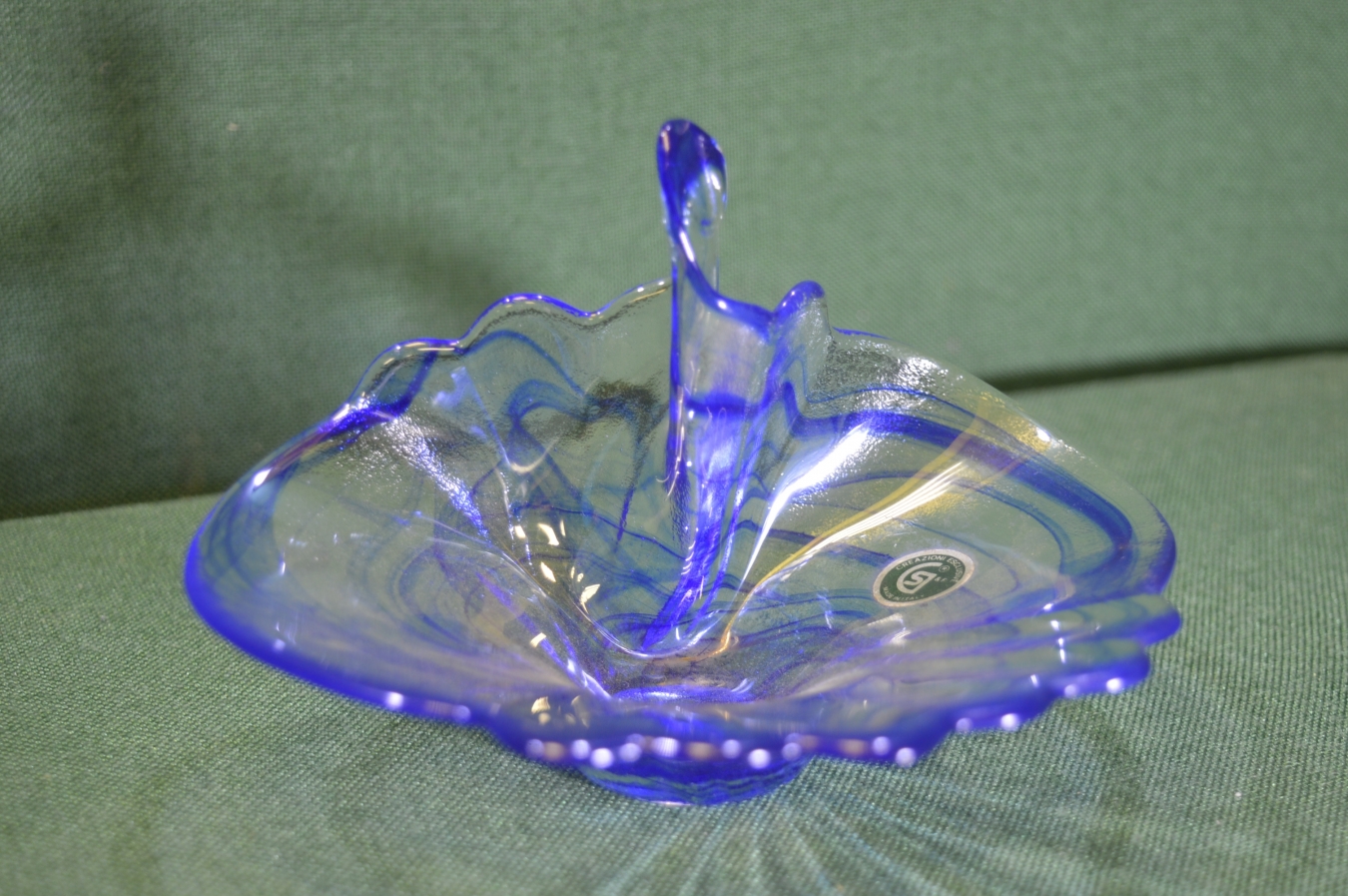 Ваза конфетница. Цветное синее стекло. Бирка. Италия. 1960е.