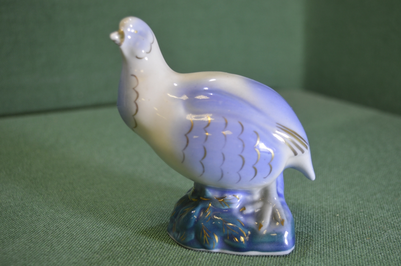 Статуэтка фарфоровая "Куропатка птица". Фарфор. Гжель. СССР.