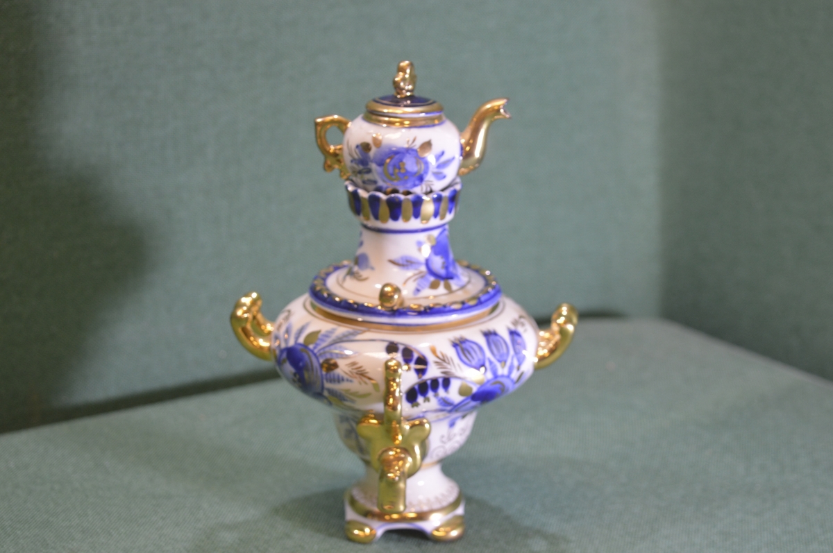 Самовар фарфоровый. Фарфор. Роспись. Золочение. Гжель. СССР.
