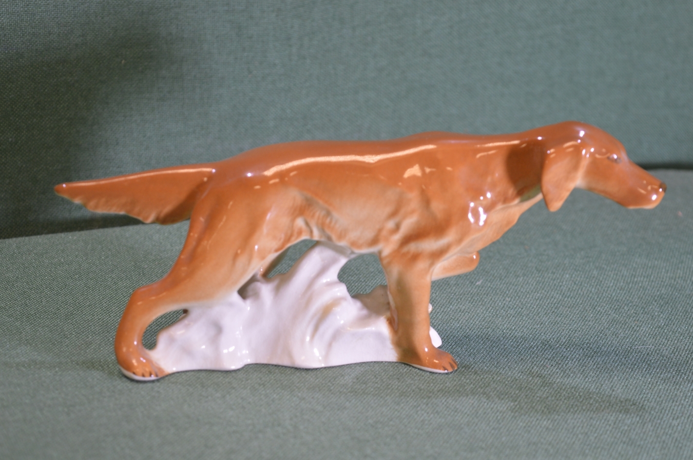 Статуэтка фарфоровая "Собака Сеттер". Фарфор. Охота. ЛФЗ. СССР. #U