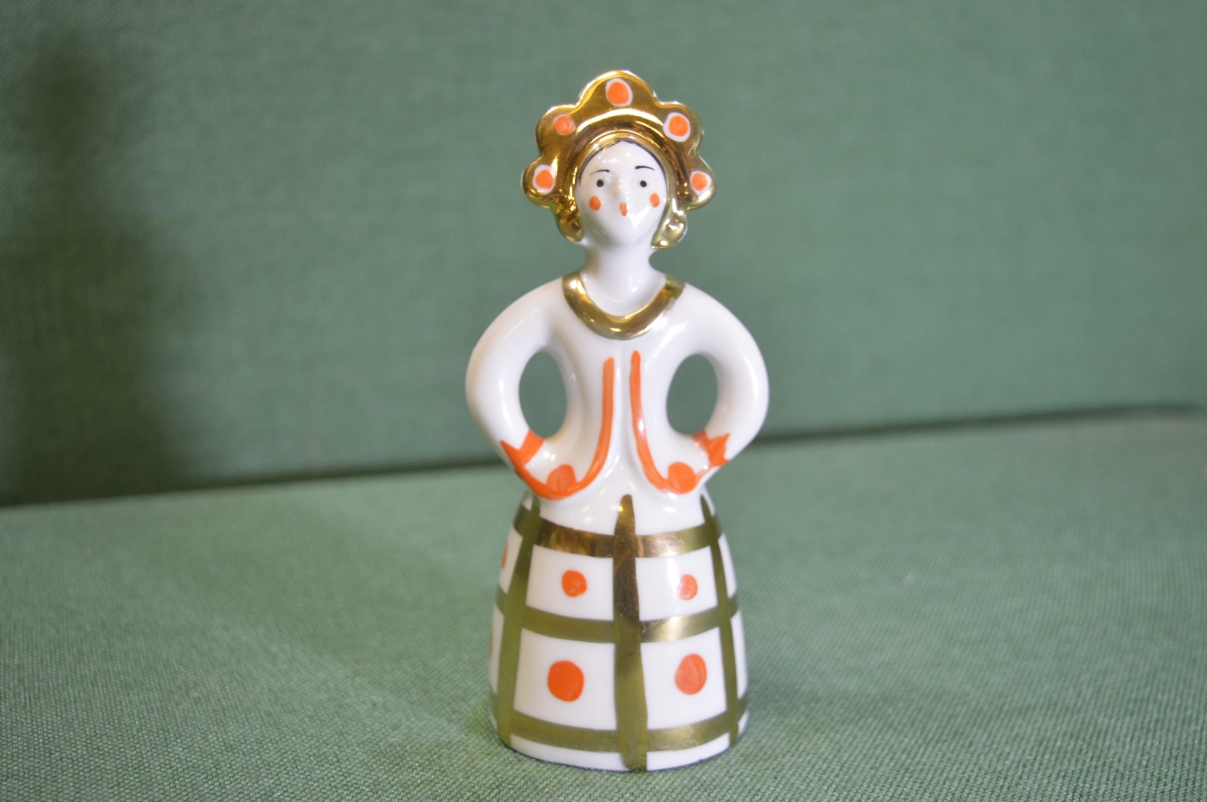 Фарфоровая статуэтка "Девушка кокошнике". Фарфор, золочение. Дулево. СССР. #U
