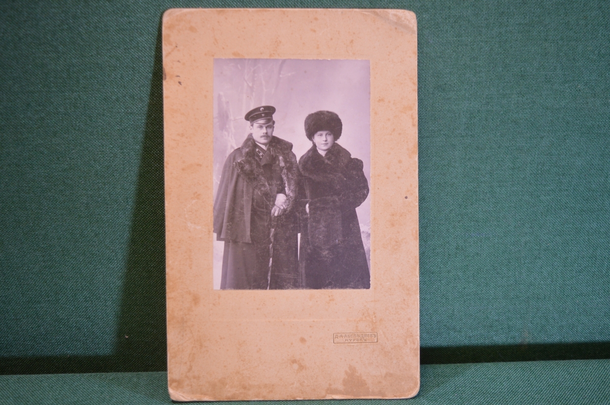 Фотография старинная "Инженер с женой". Российская Империя. Абельдяев, Курск.