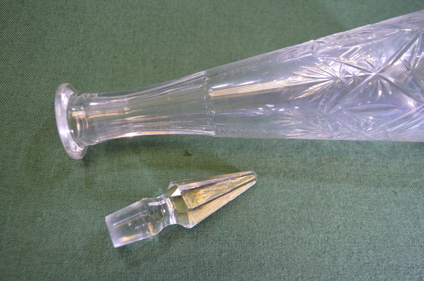Графин стеклянный, с граненой пробкой.