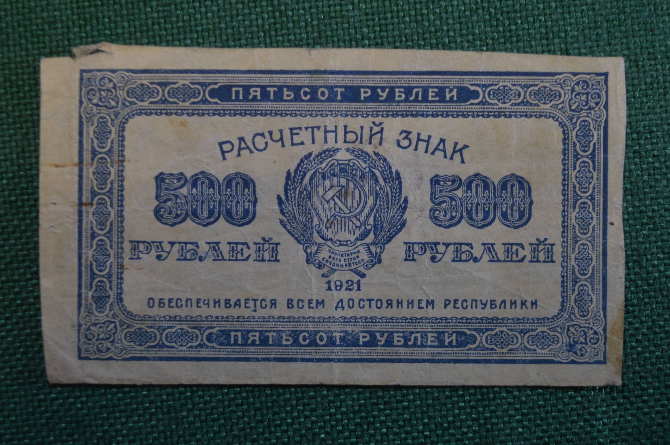 Бона, банкнота, расчетный знак 500 Пятьсот рублей 1921 года. Надпечатка.