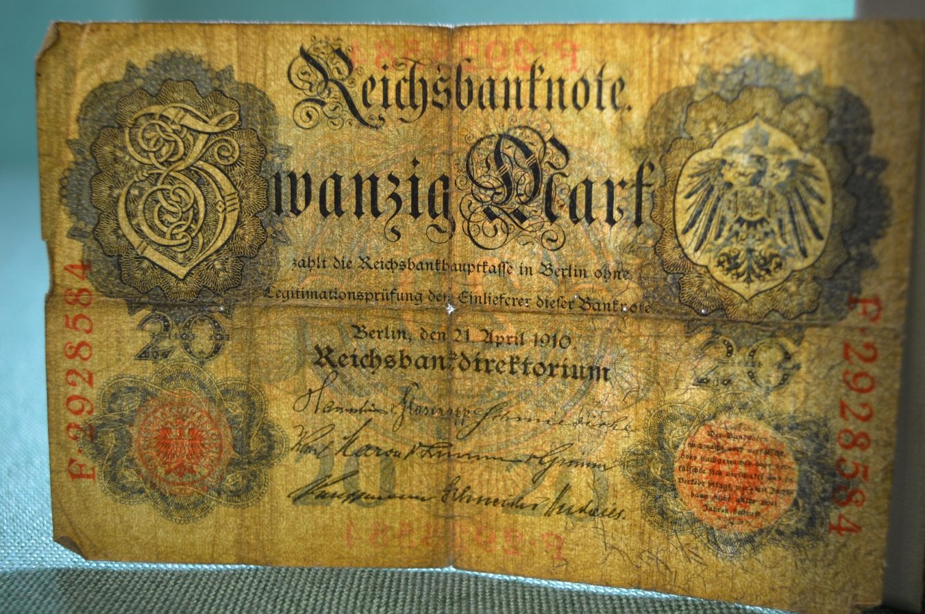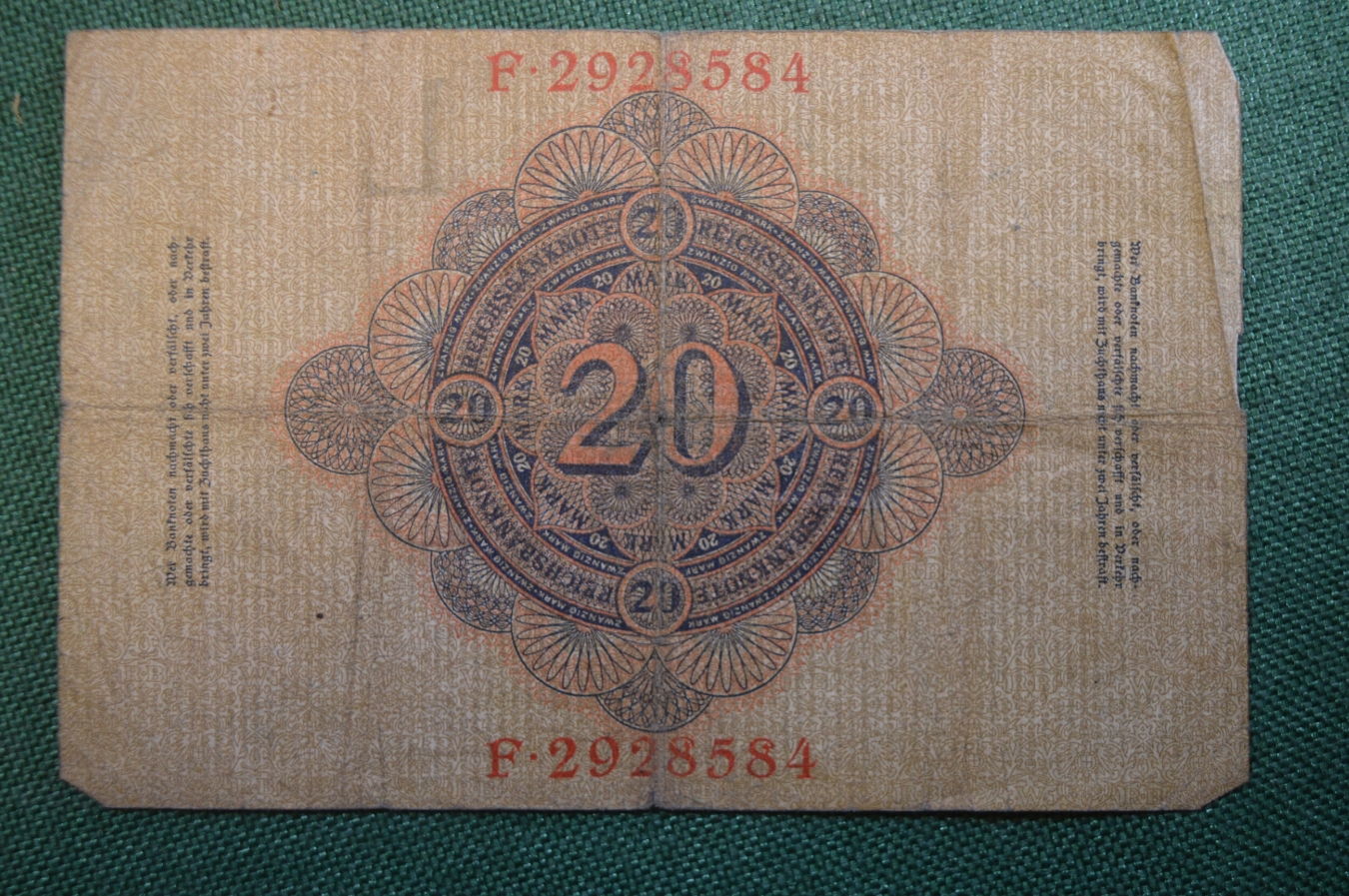 Бона, банкнота 20 Двадцать марок 1910 года. Германия.