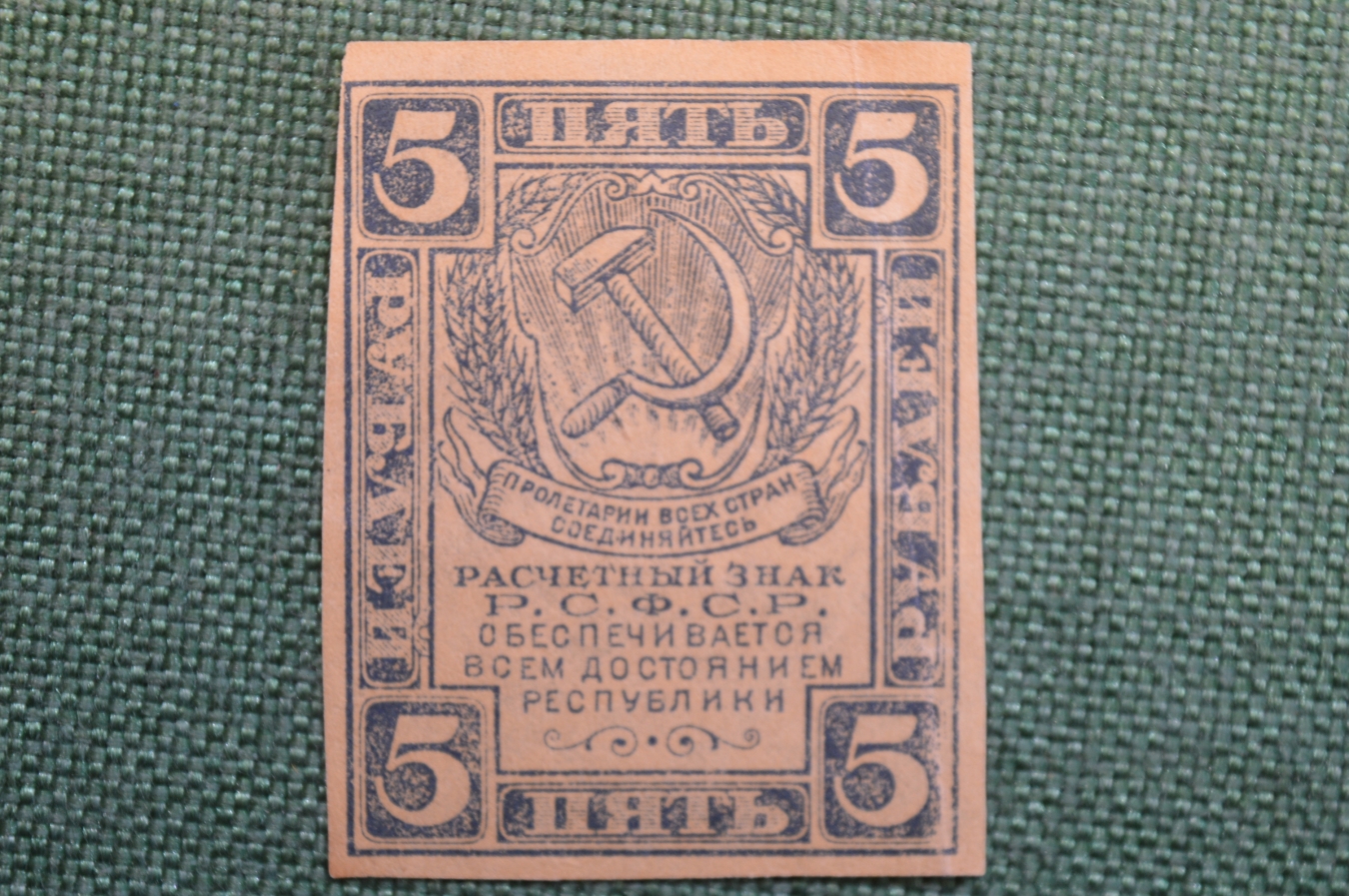 Бона, банкнота 5 Пять рублей 1920 года. Расчетный знак РСФСР. #4