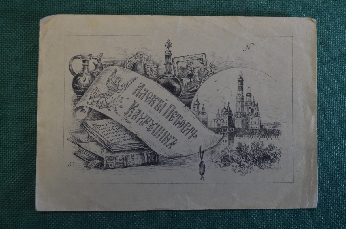 Экслибрис, ex libris, книжный знак. Алексей Петрович Бахрушин. Библиотека.