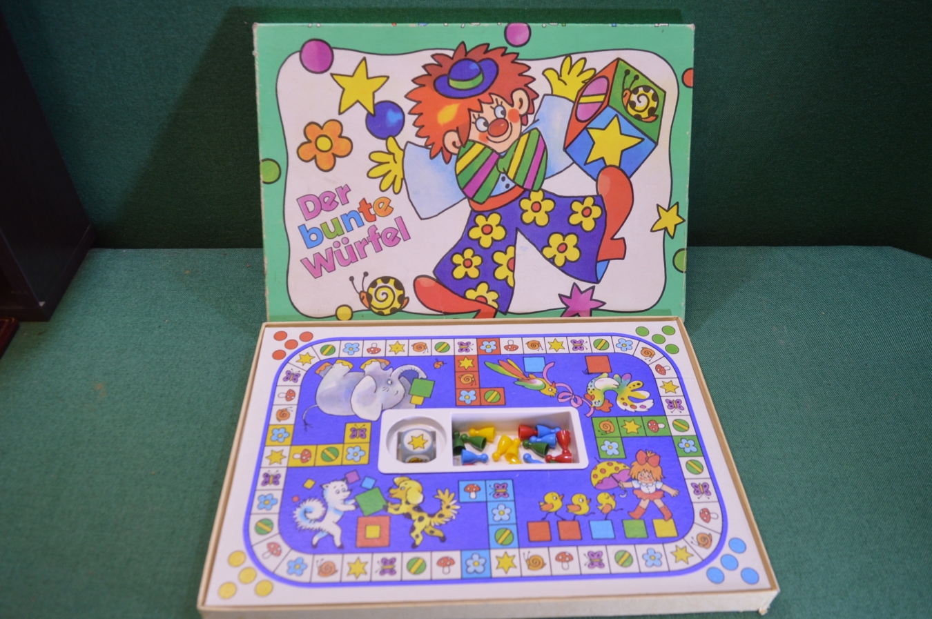 Игра настольная "Пестрый кубик Der bunte Würfel". Коробка. ГДР. Германия.