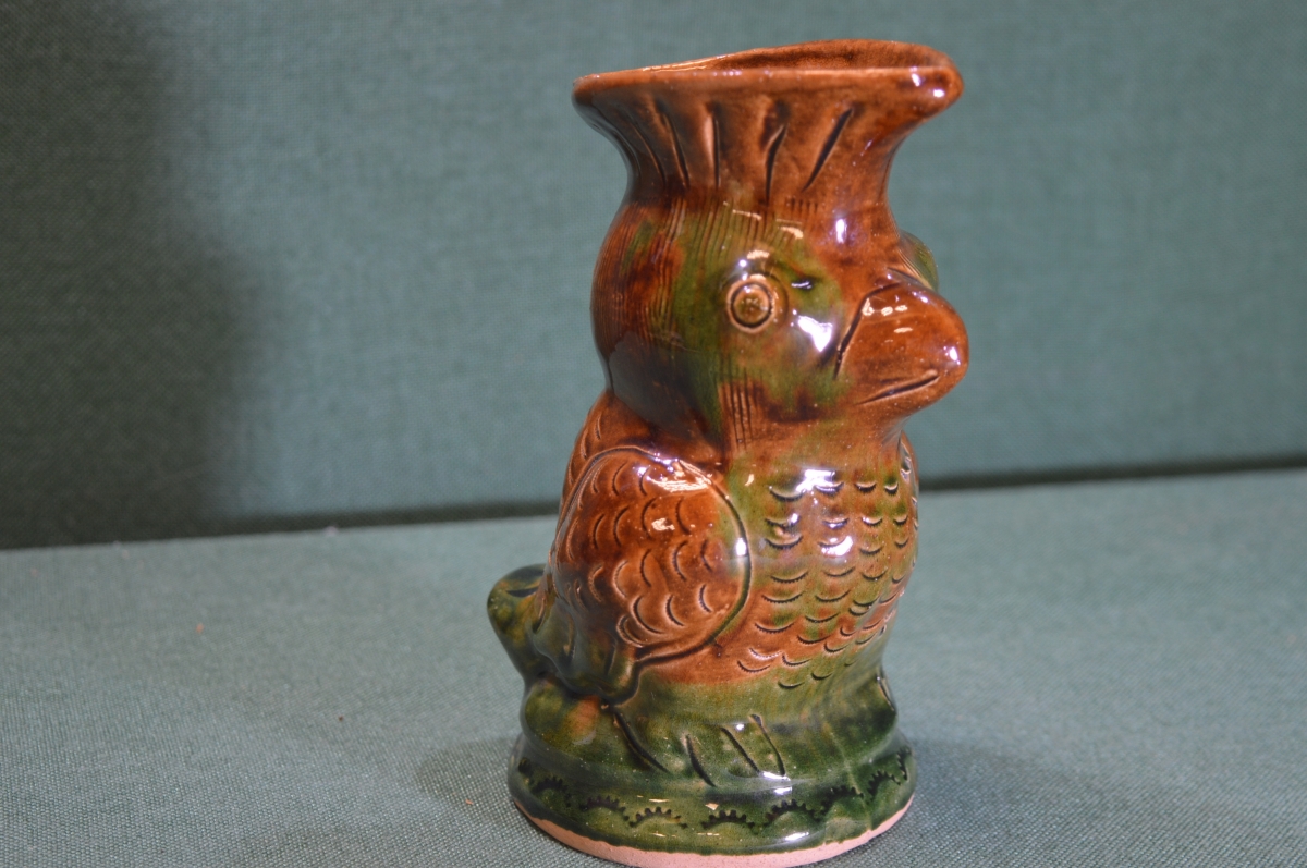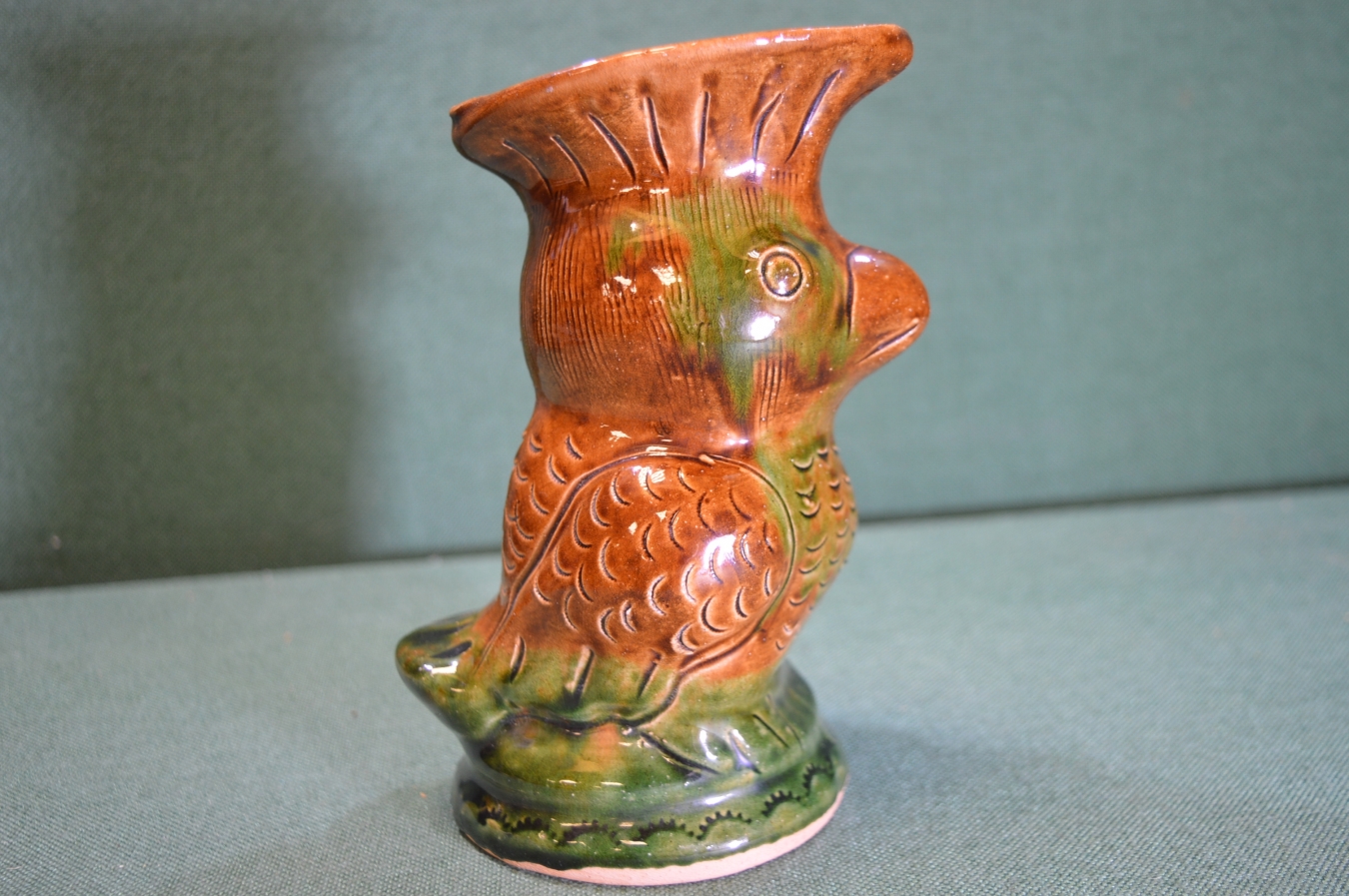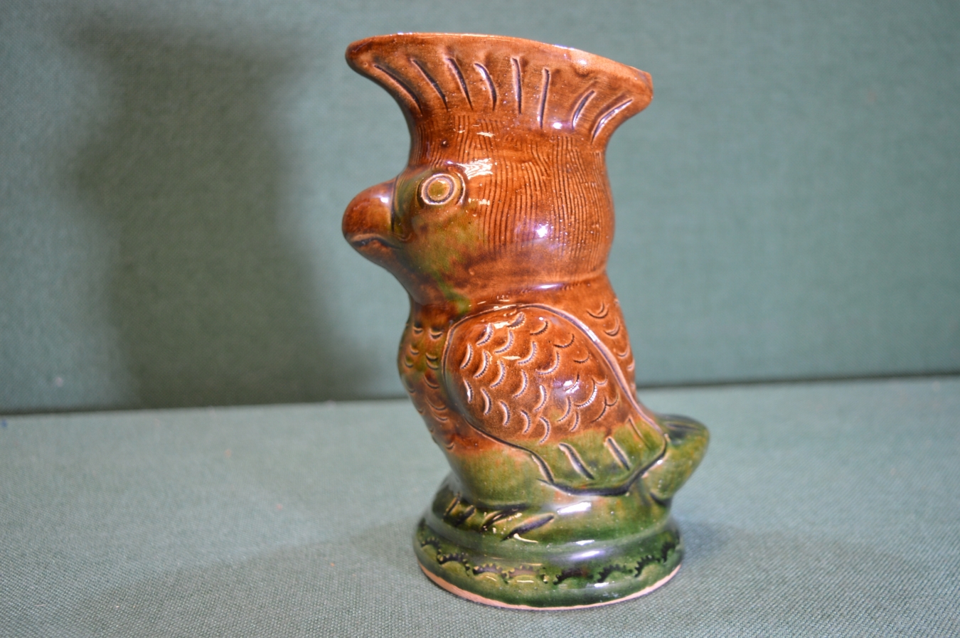 Ваза керамическая "Попугай". Скопинская обливная керамика. Скопин. СССР.