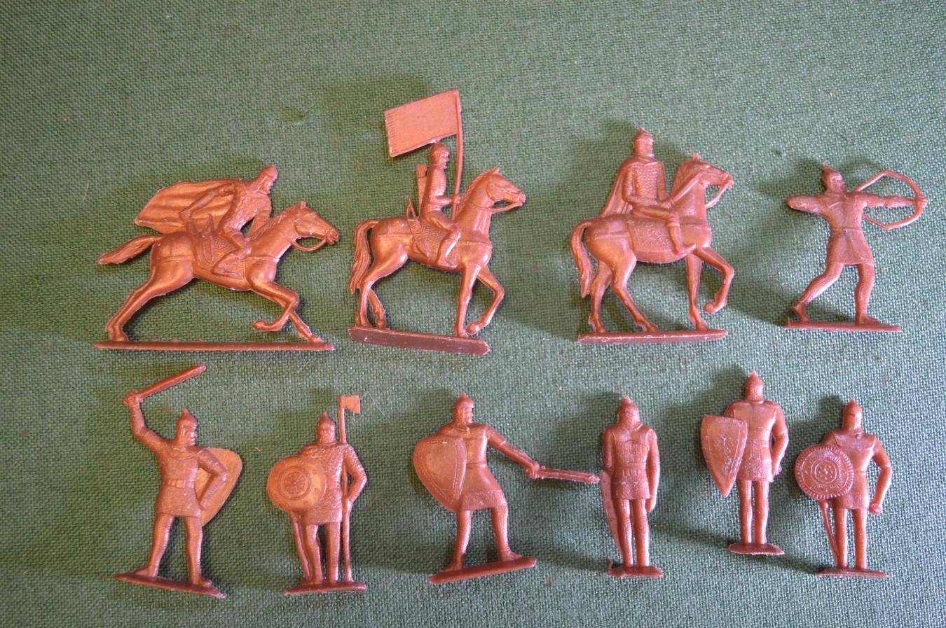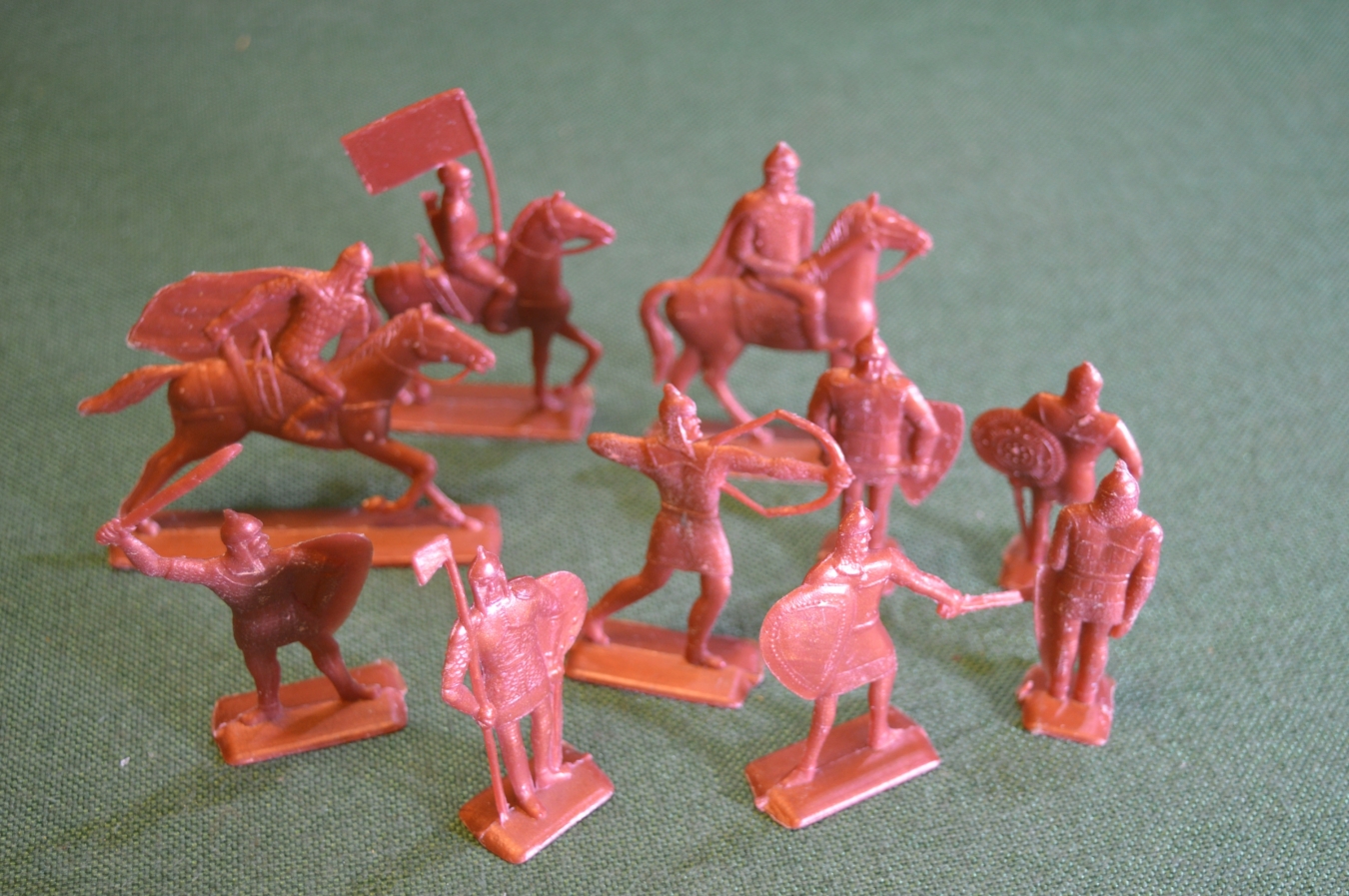 Солдатики "Русские воины, витязи". Коричневые. Плоский пластик. СССР.