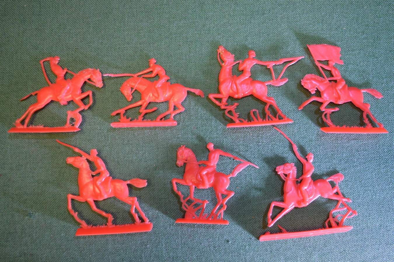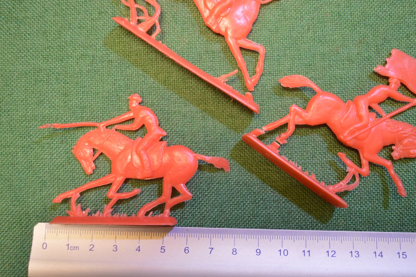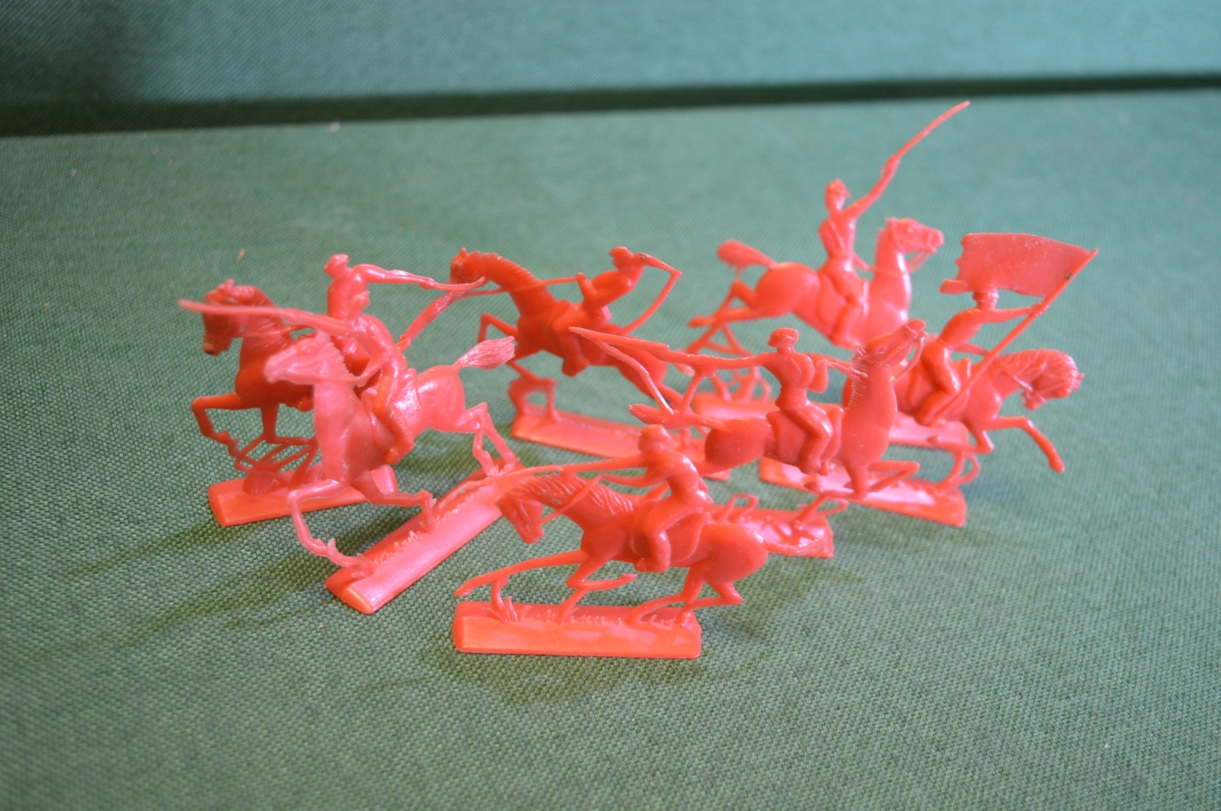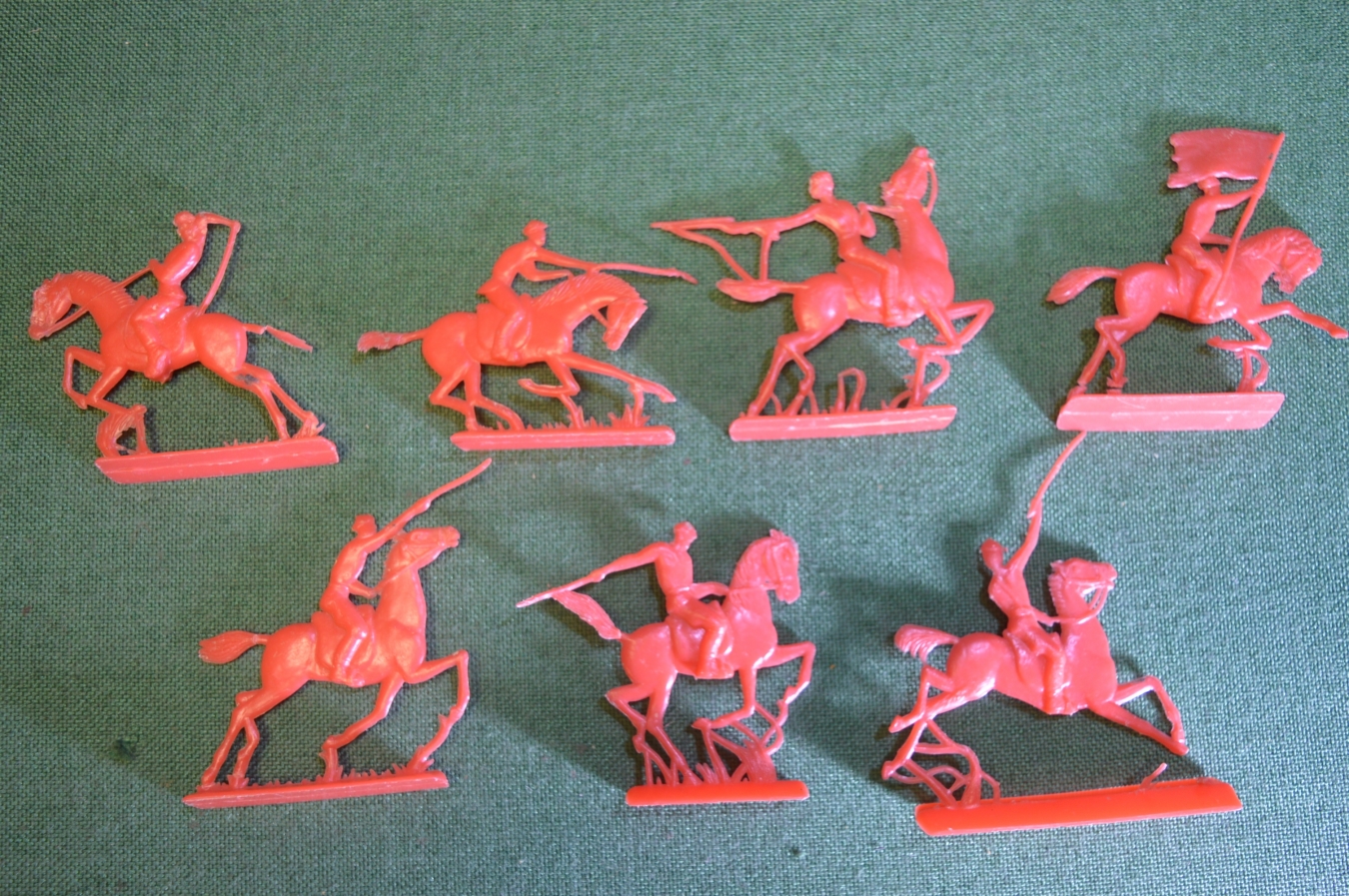 Солдатики "Красноармейцы, буденовцы, РККА". Красные. Плоский пластик. С дефектами.