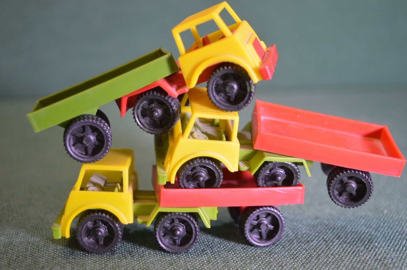 Машина грузовик. Лот 3 штуки. Мини игрушка, модель. Пластик.