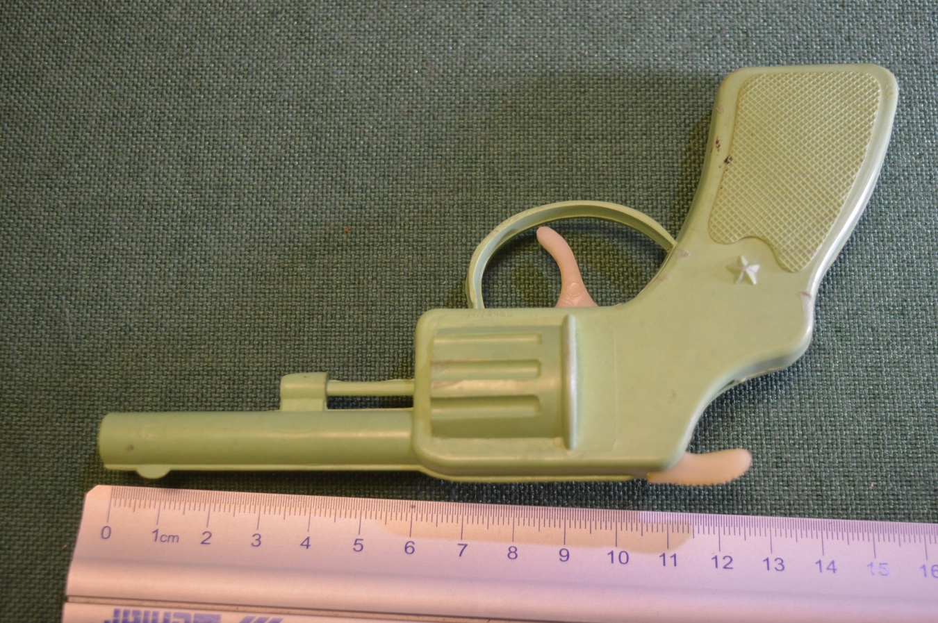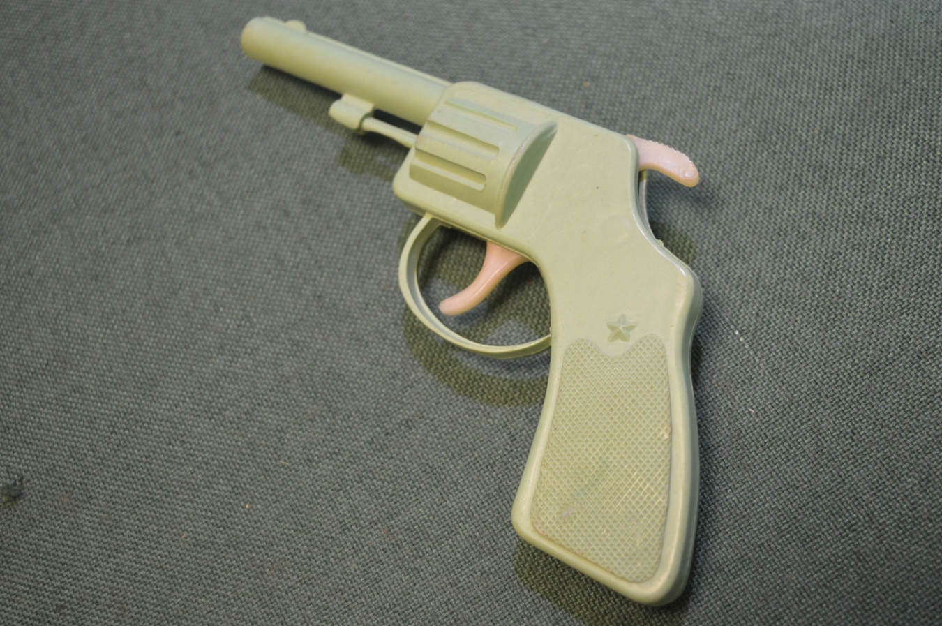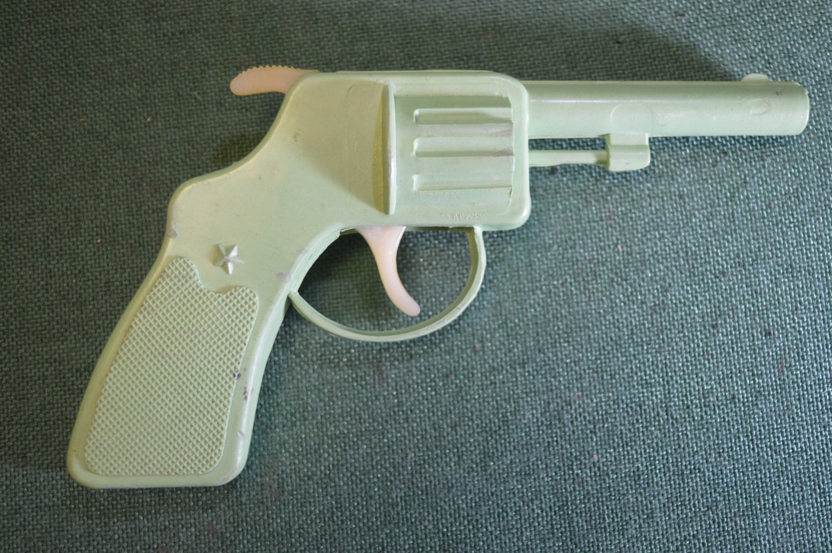 Пистолет, револьвер игрушечный. Светло зеленый. Звезда. Пластик. СССР.