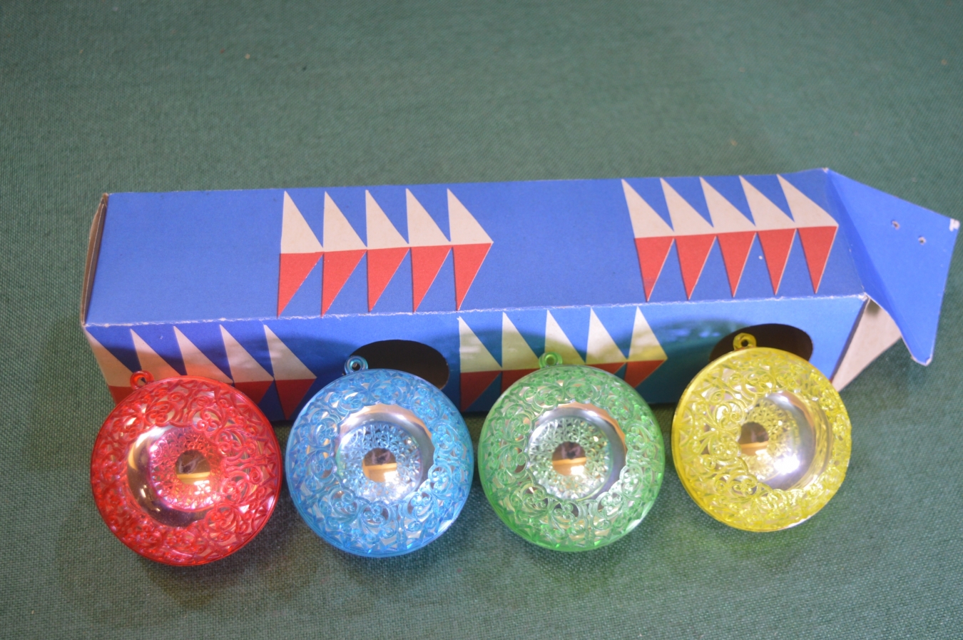 Набор елочных игрушек "Шар зеркальный". Коробка. Пластмасса. ФХИ. СССР.