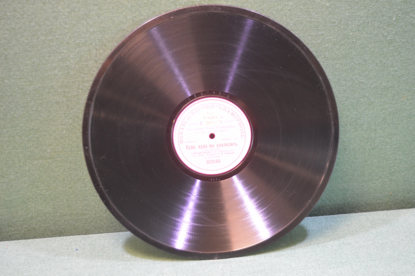 Пластинка патефонная "Куда куда Вы удалились. Онегин. Собинов". Грамофонъ. Царская Россия.