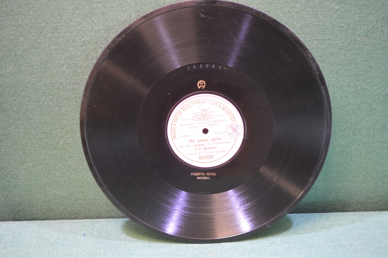 Пластинка патефонная "Не плачь Дитя. демон. Рубинштейн. Шаляпин". Грамофонъ. Царская Россия.