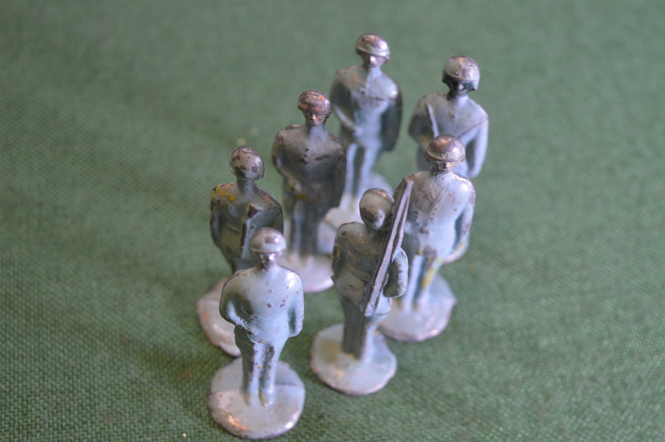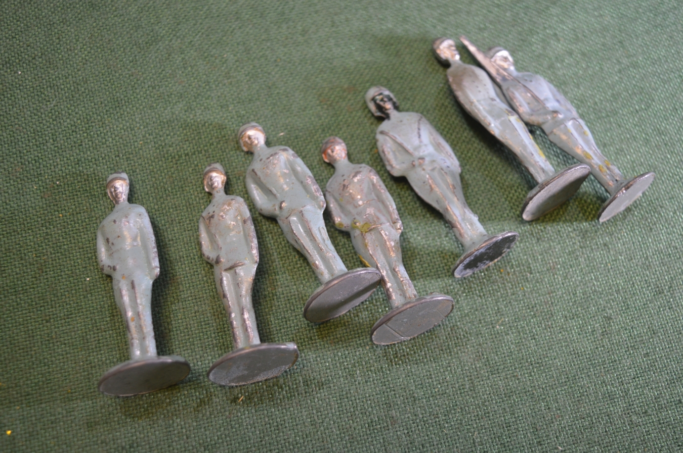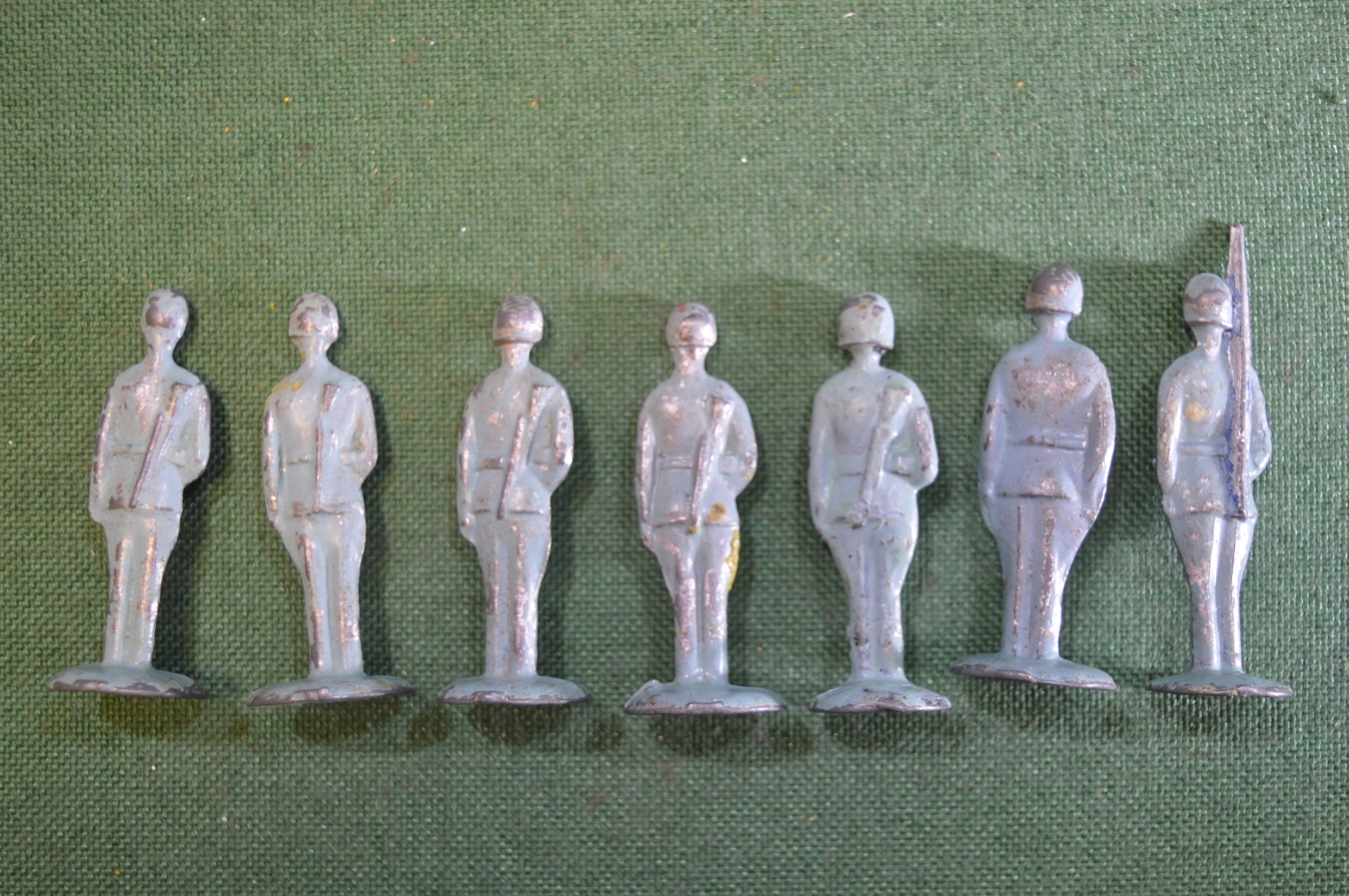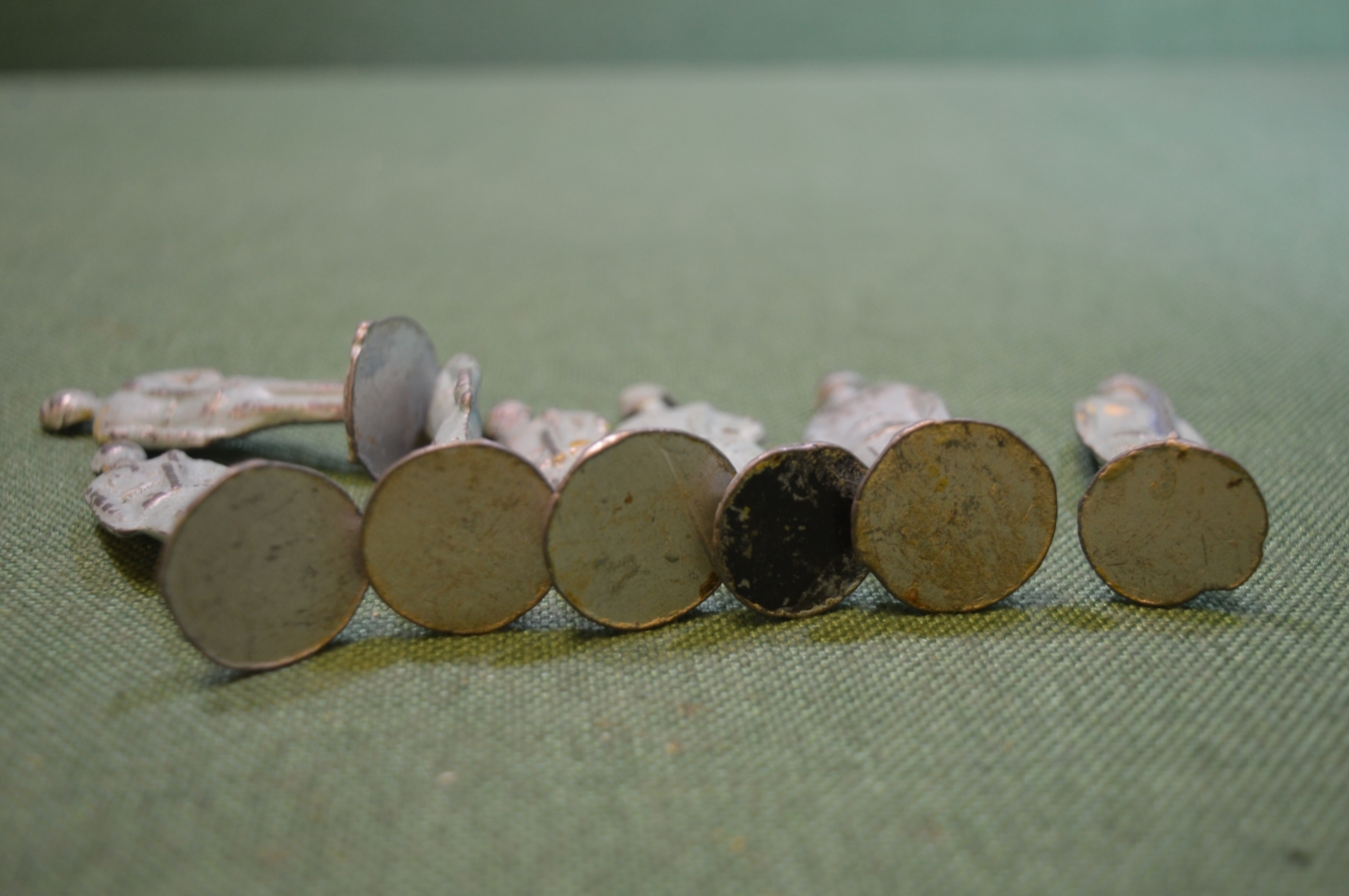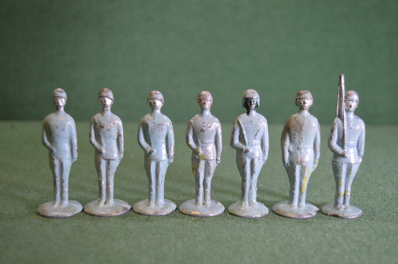 Солдатики оловянные, столбики. Красноармейцы. Старые. Бирюзовый цвет. 7 штук.