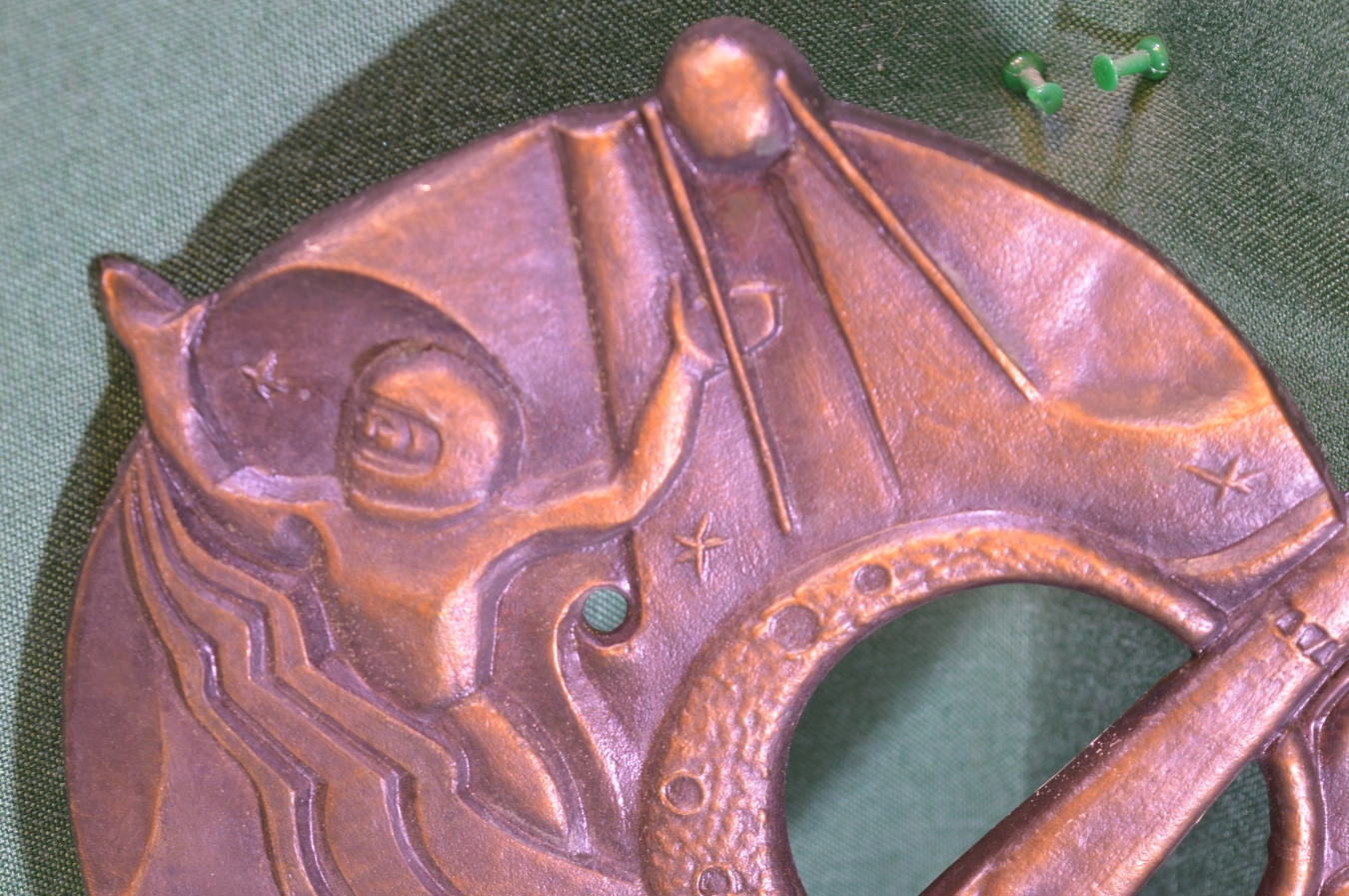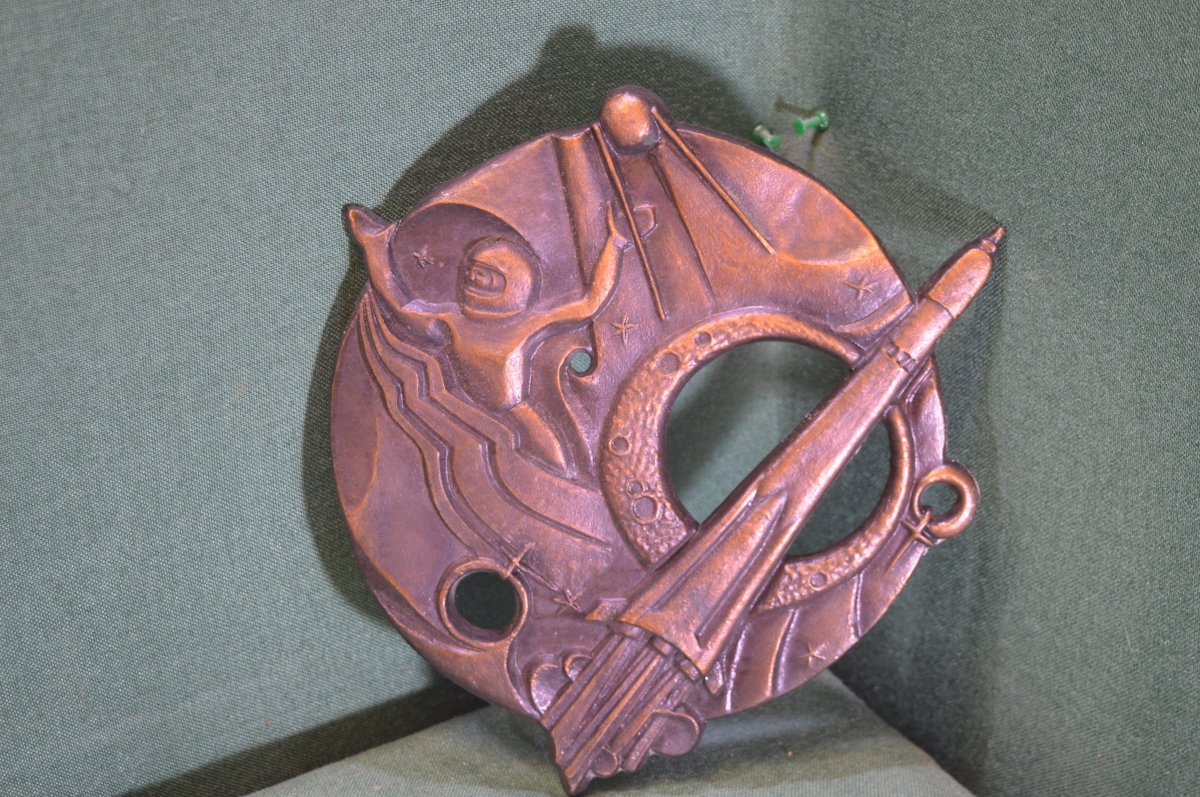 Панно настенное "Космос космонавтика космонавт ракета". Металл. Силумин. СССР.