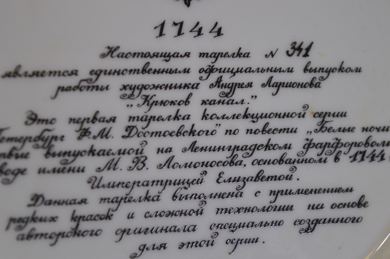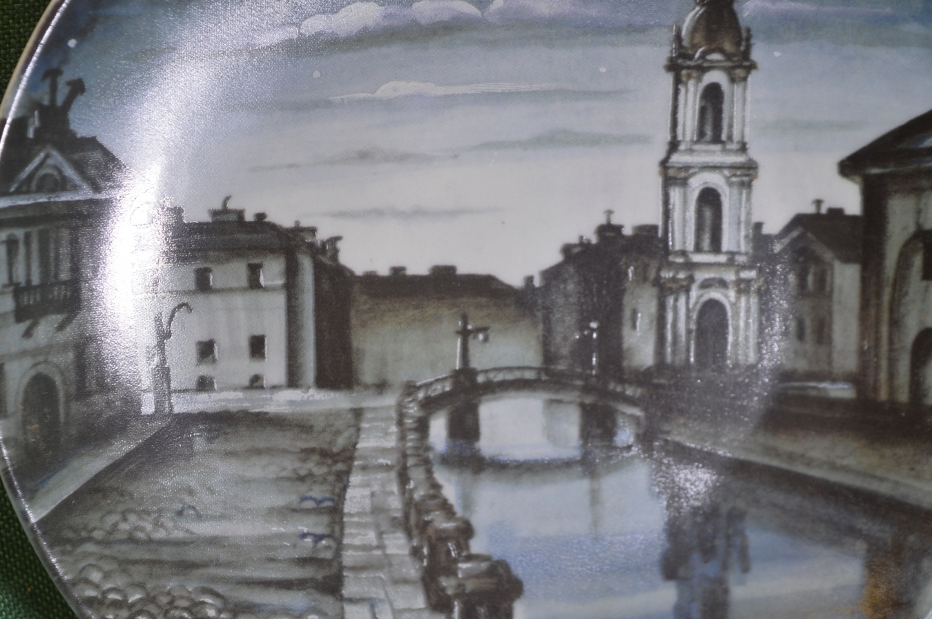 Тарелка настенная "Крюков канал". Ларионов. Белые ночи. ЛФЗ.
