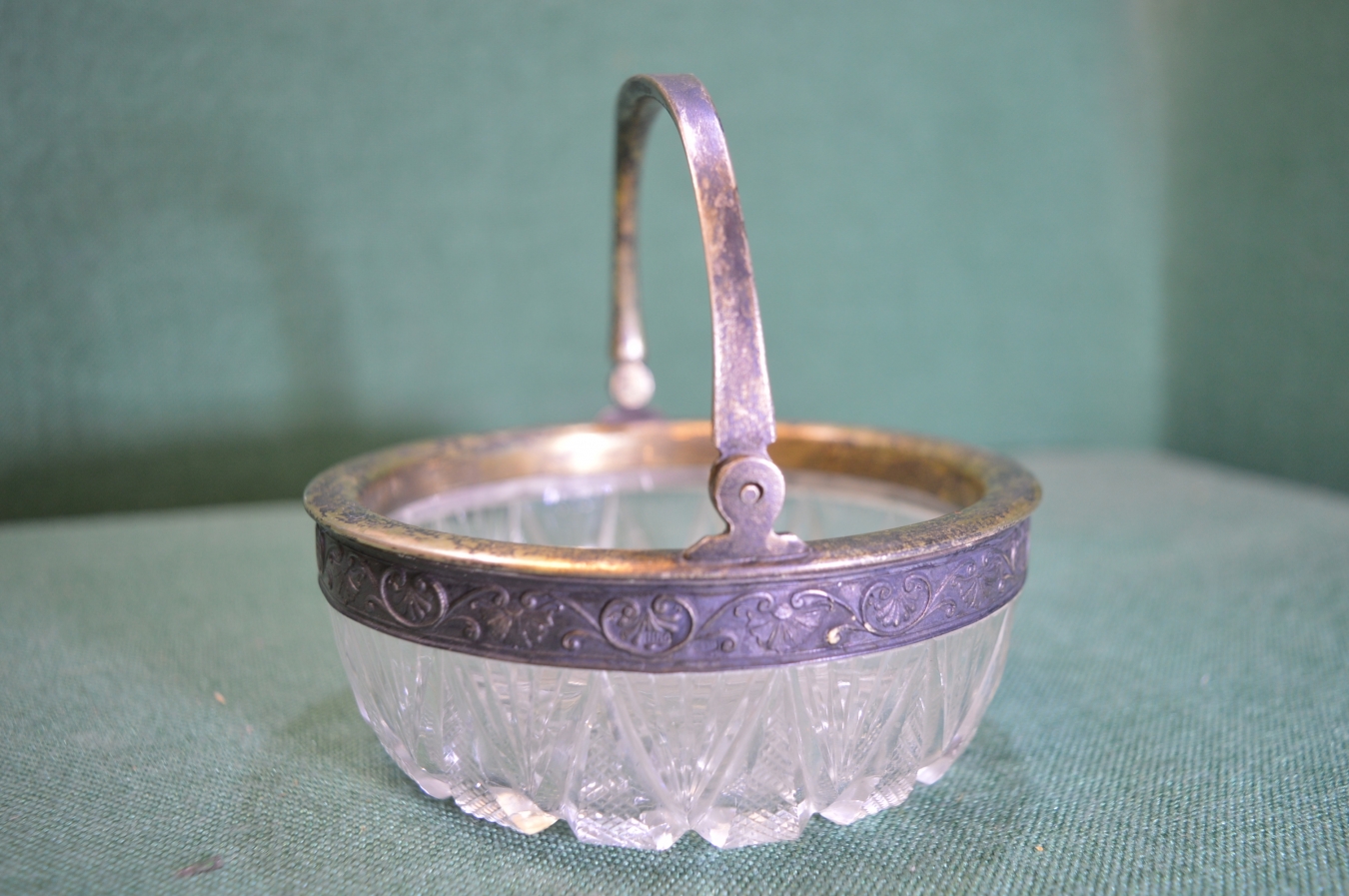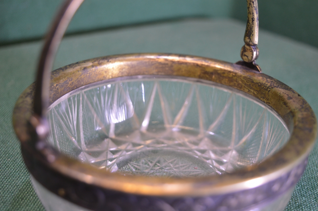 Ваза вазочка конфетница. Серебро 875 проба звезда. Хрусталь. СССР.
