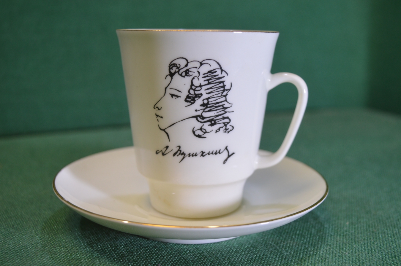 Кофейная пара фарфоровая "Пушкин". Чашка + блюдце. Фарфор. ЛФЗ.