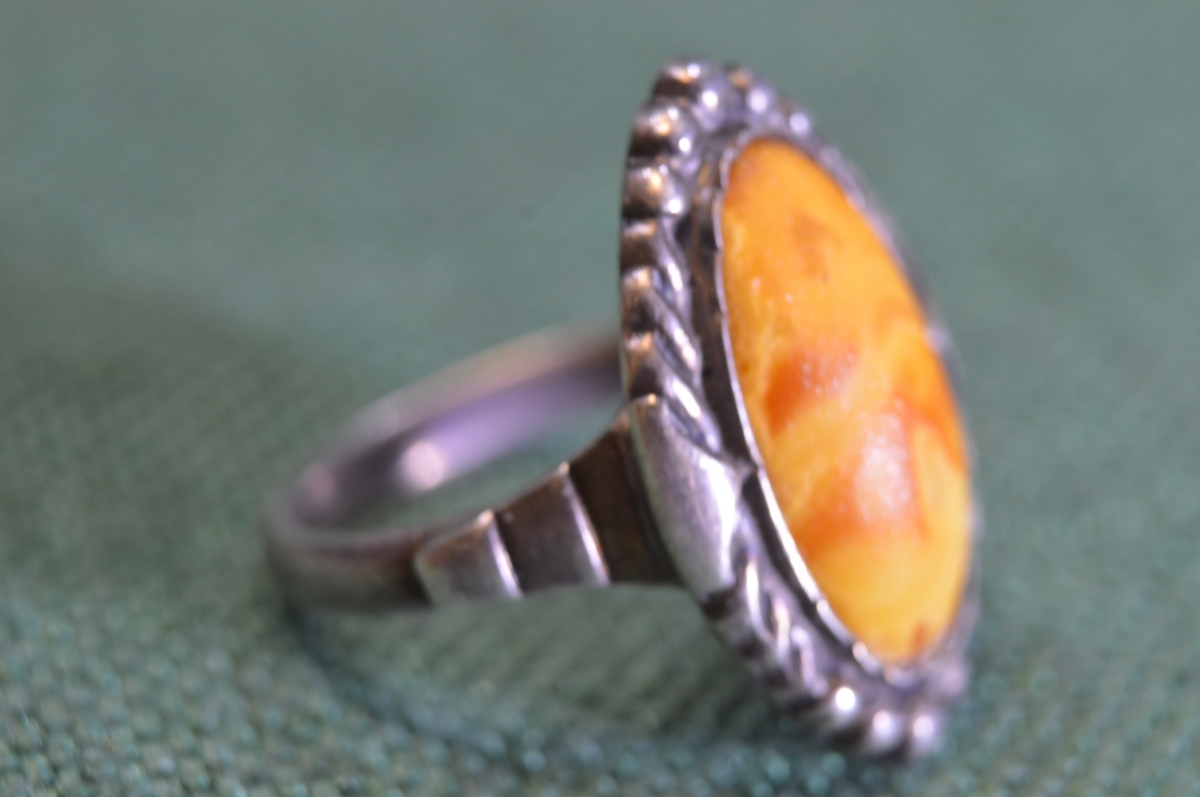 Кольцо женское. Серебро 875 проба голова RG. Янтарь. Рига. СССР.