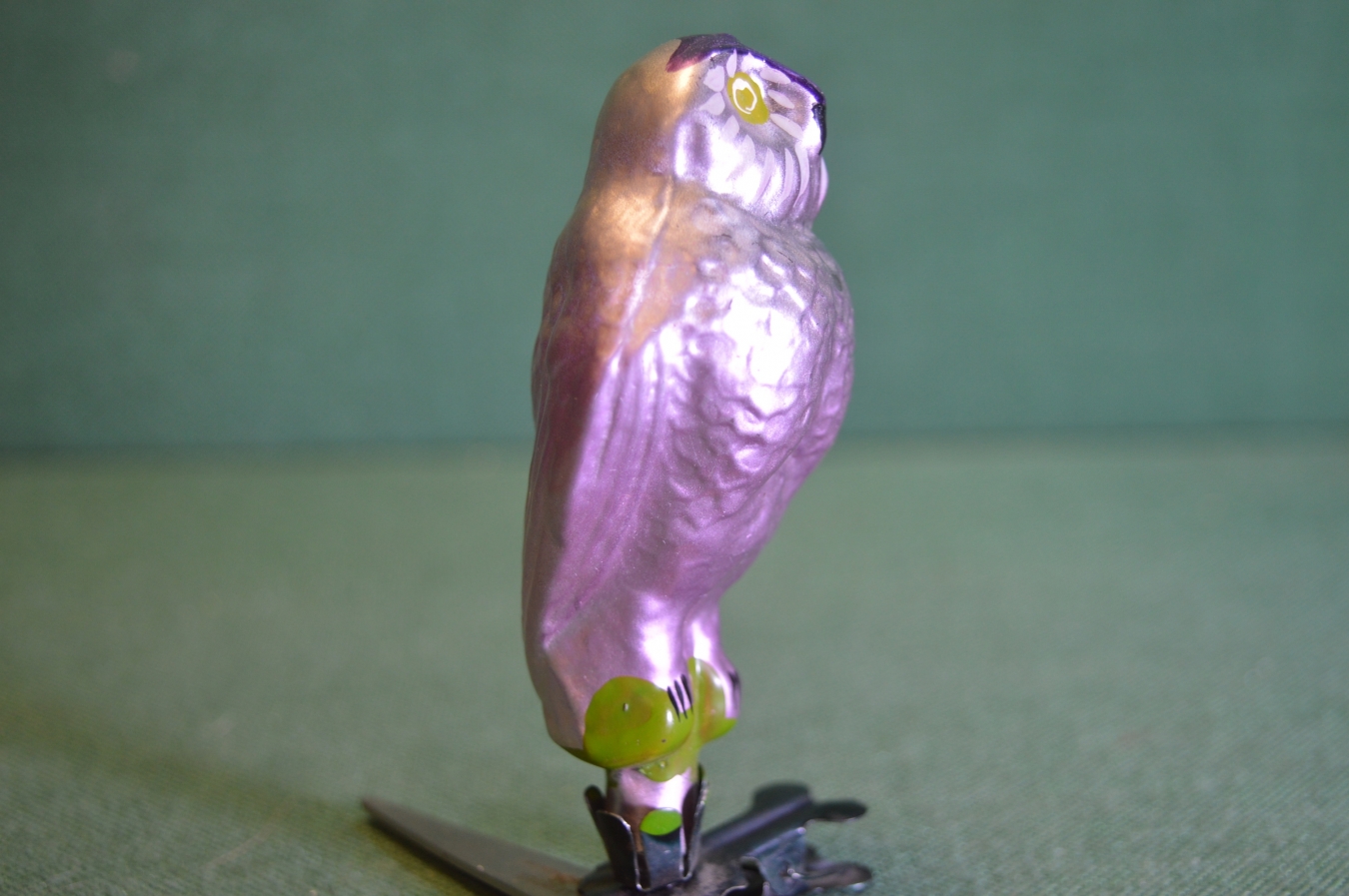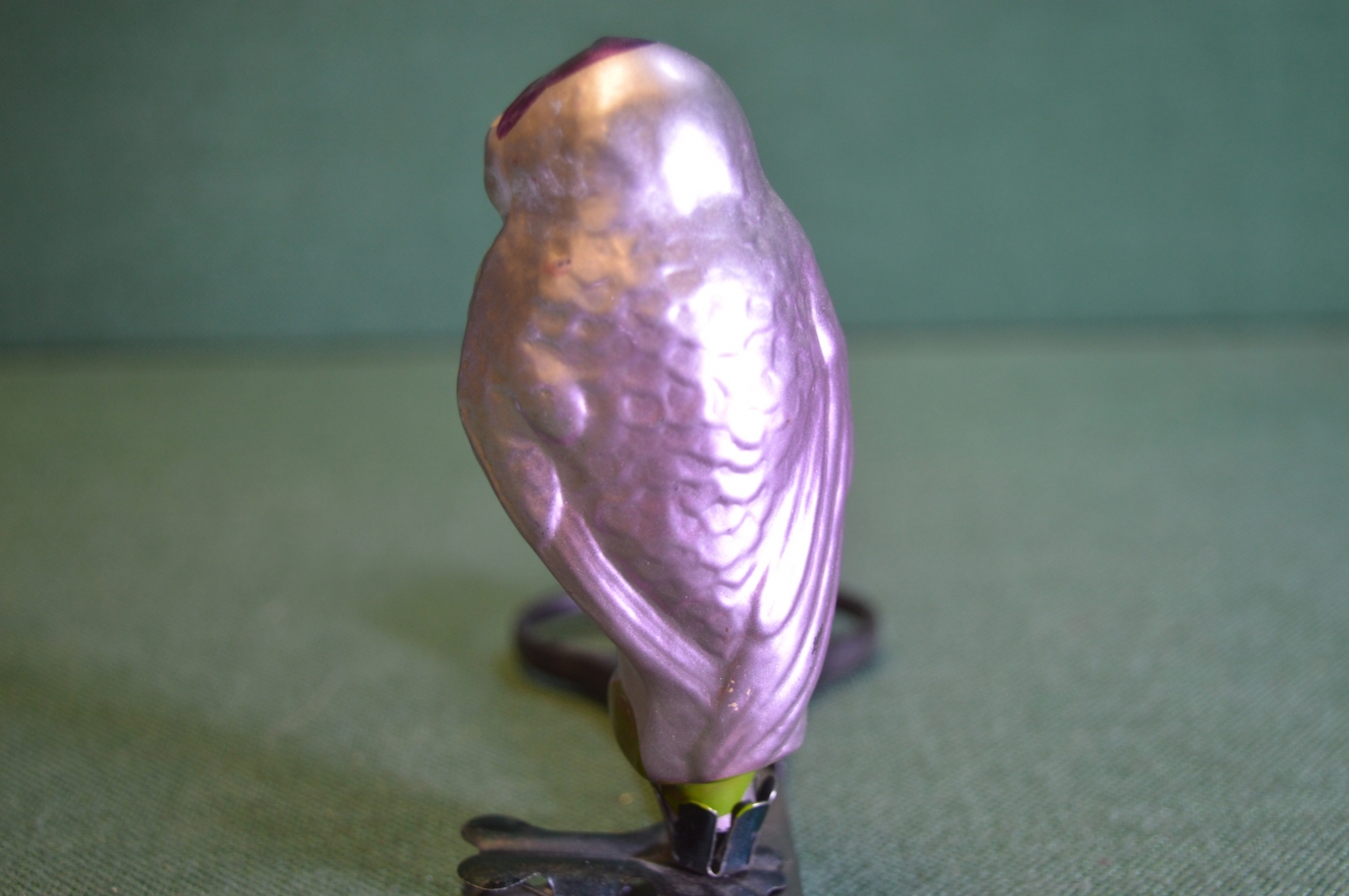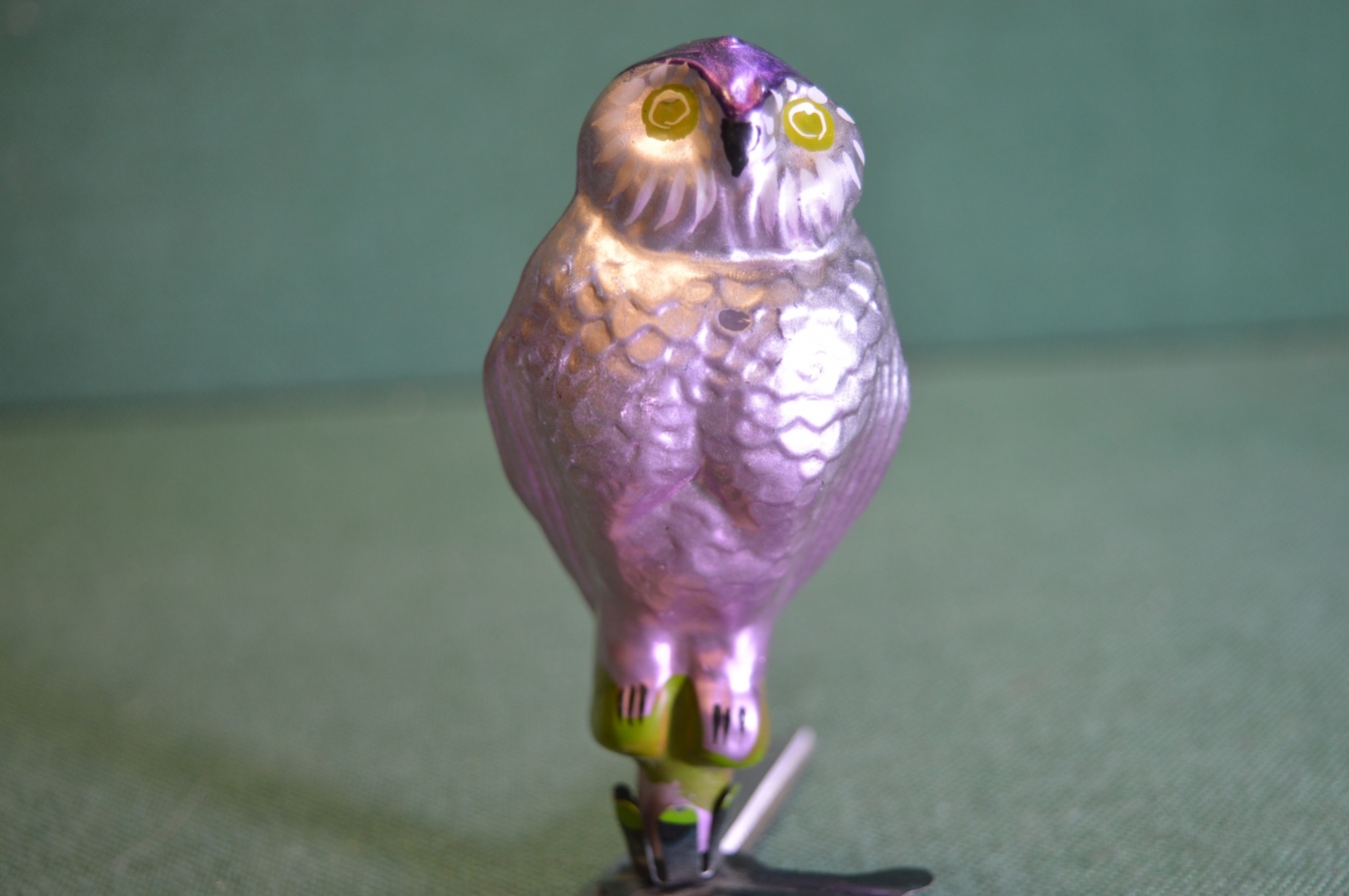 Елочная игрушка стеклянная "Филин, сова". Стекло, прищепка. #1