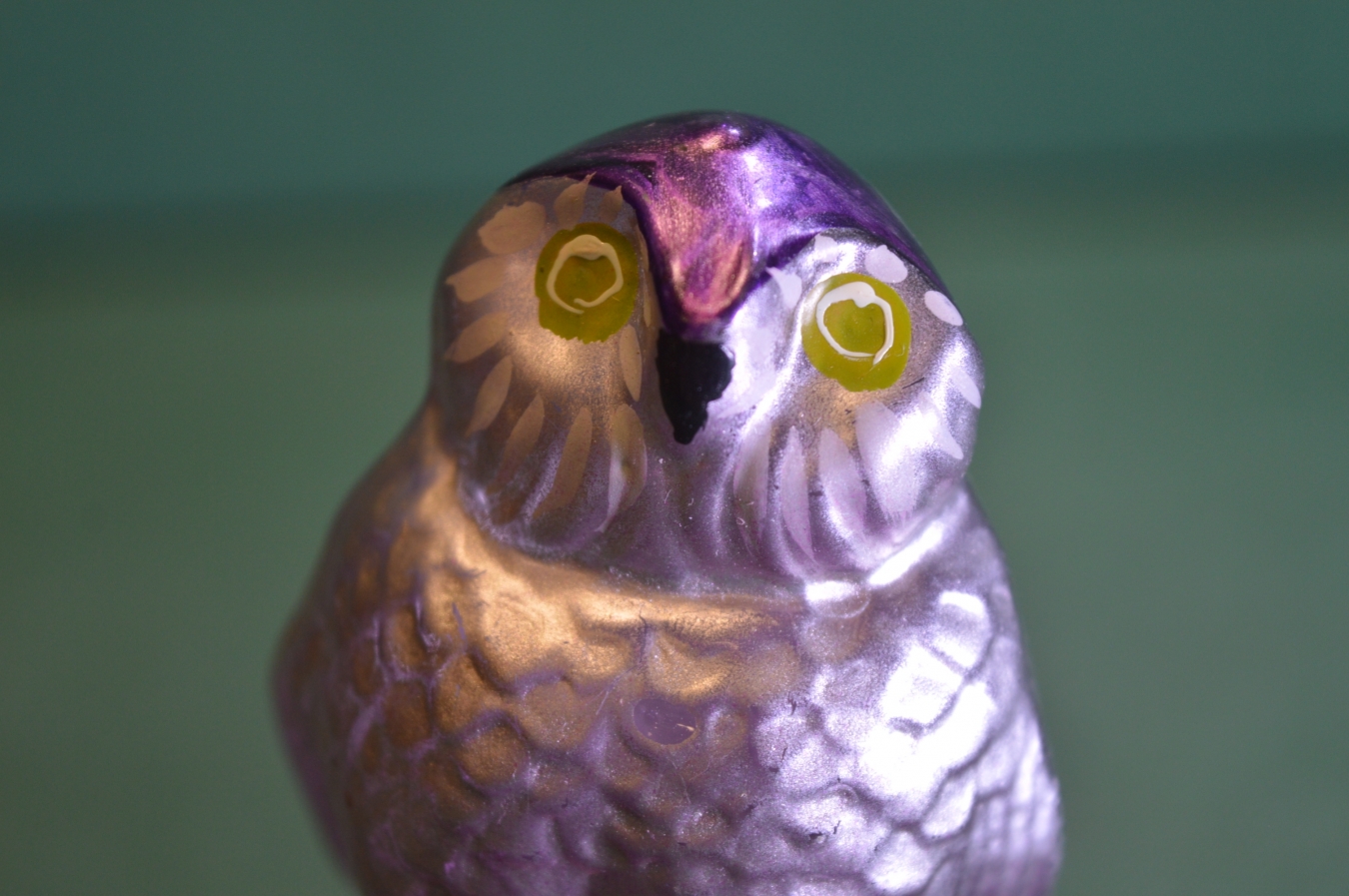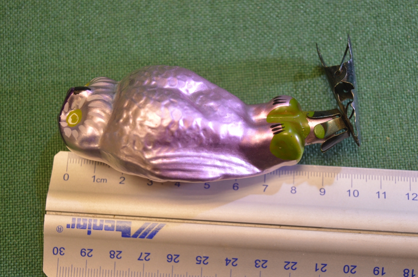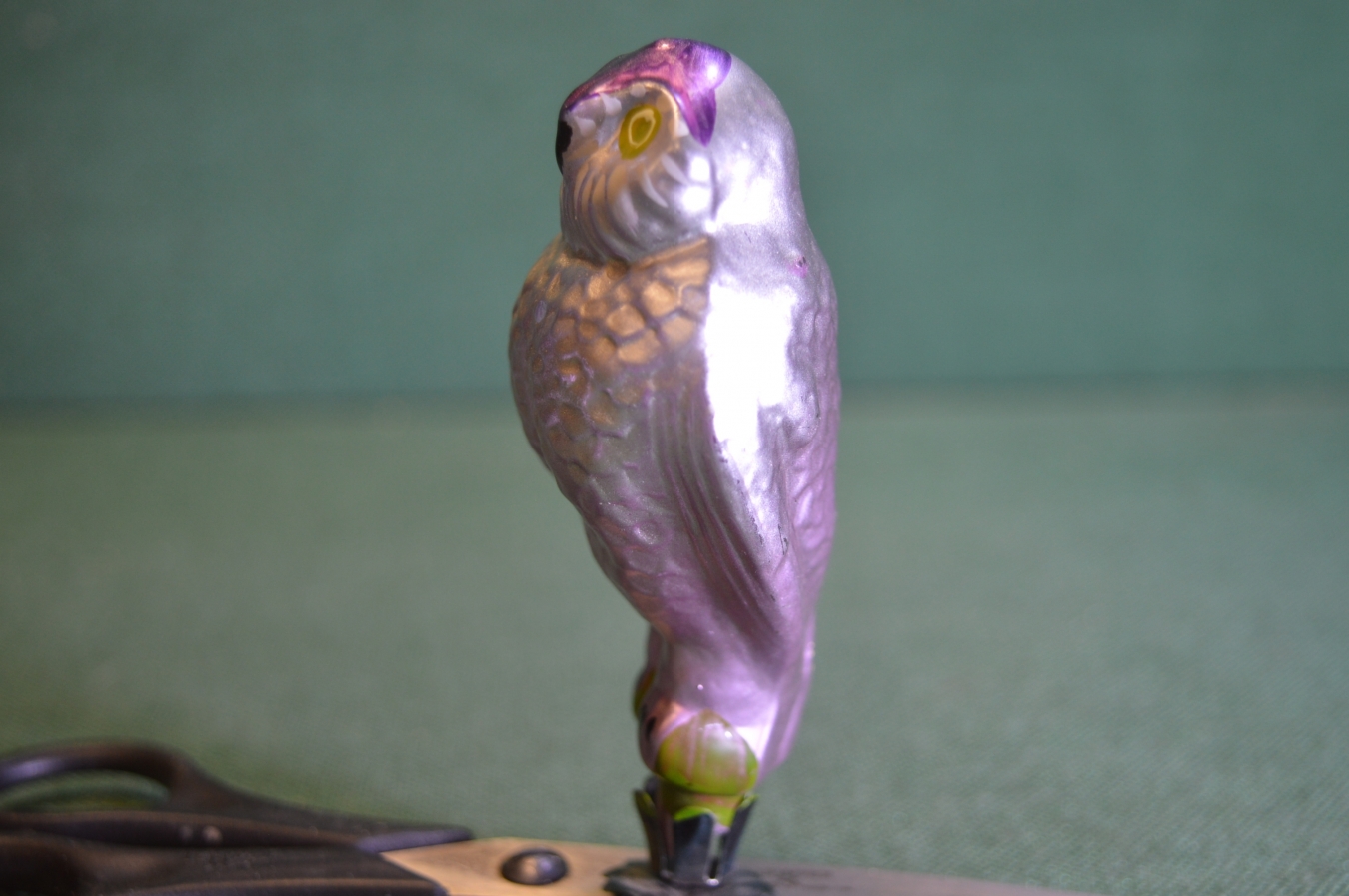 Елочная игрушка стеклянная "Филин, сова". Стекло, прищепка. #1