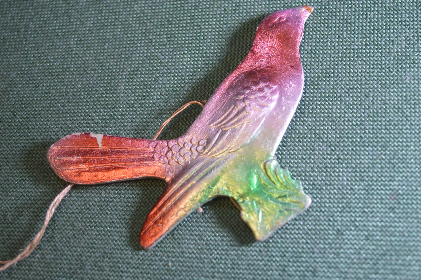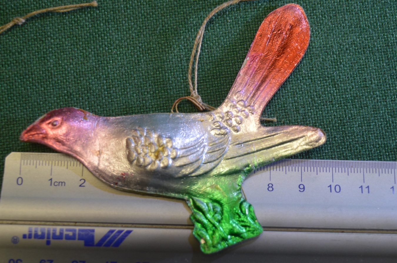 Елочная игрушка "Птица, птичка". Картонаж, фольга. СССР
