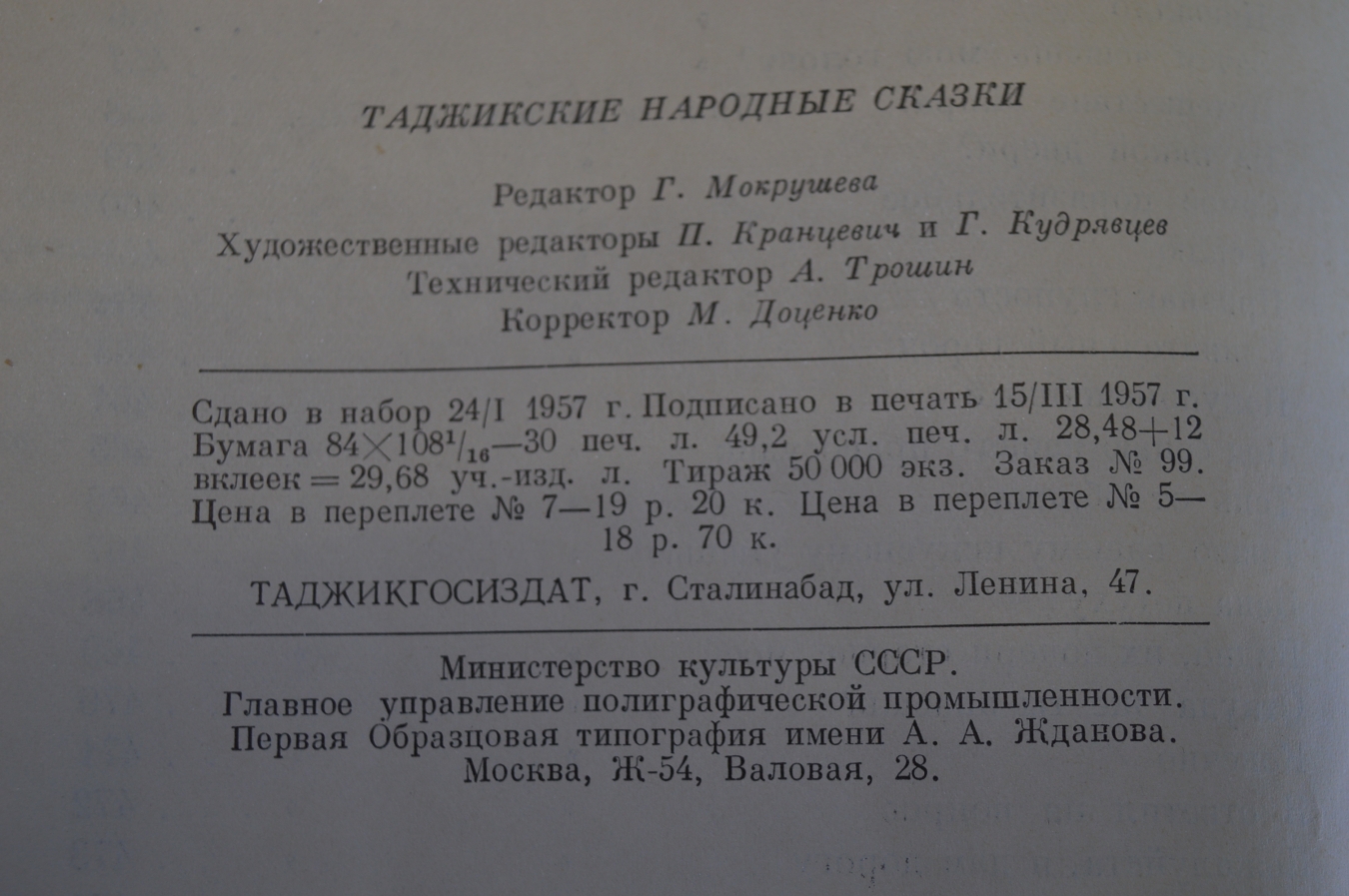 Книга "Таджикские народные сказки". Таджикистан. Сталинабад, 1957 год. #K8