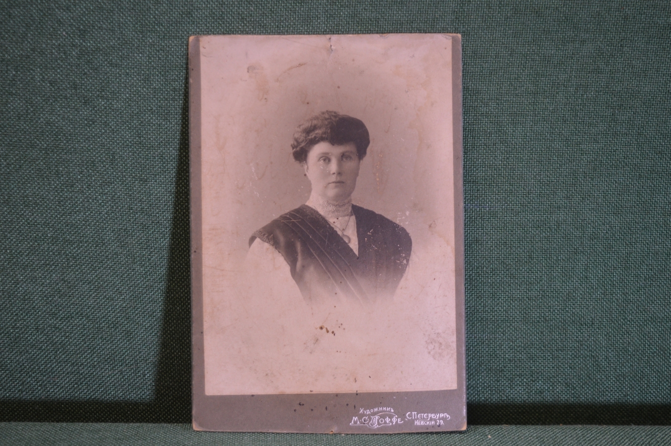 Фотография старинная "Женщина с медальоном на шее". М.С. Иоффе, Санкт - Петербург.