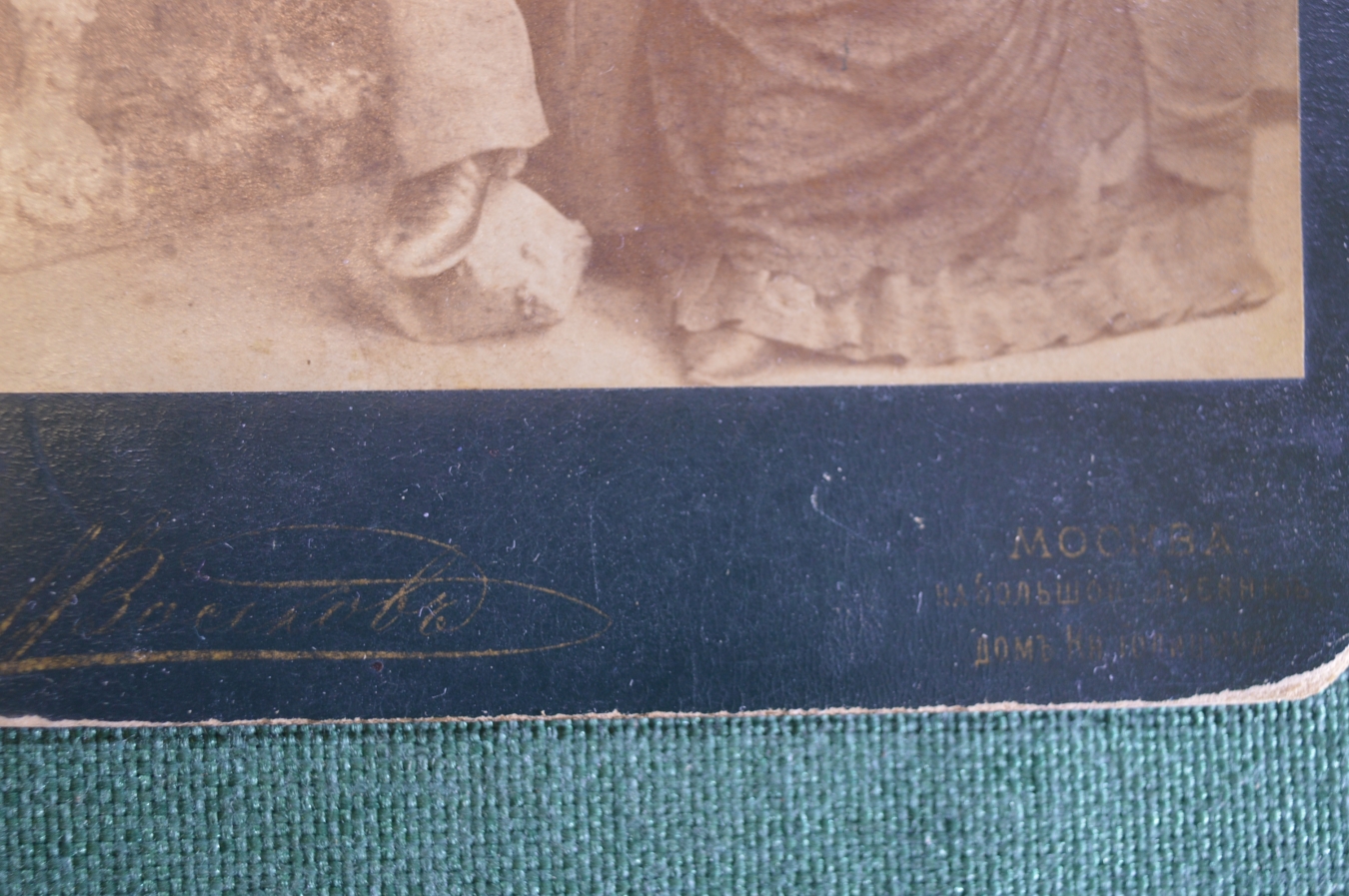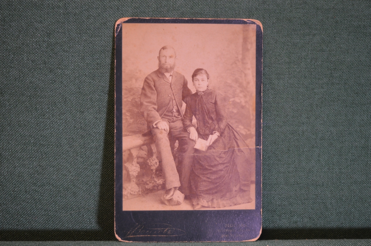Фотография старинная "Семейная пара, женщина с книжкой". Волков. Москва.