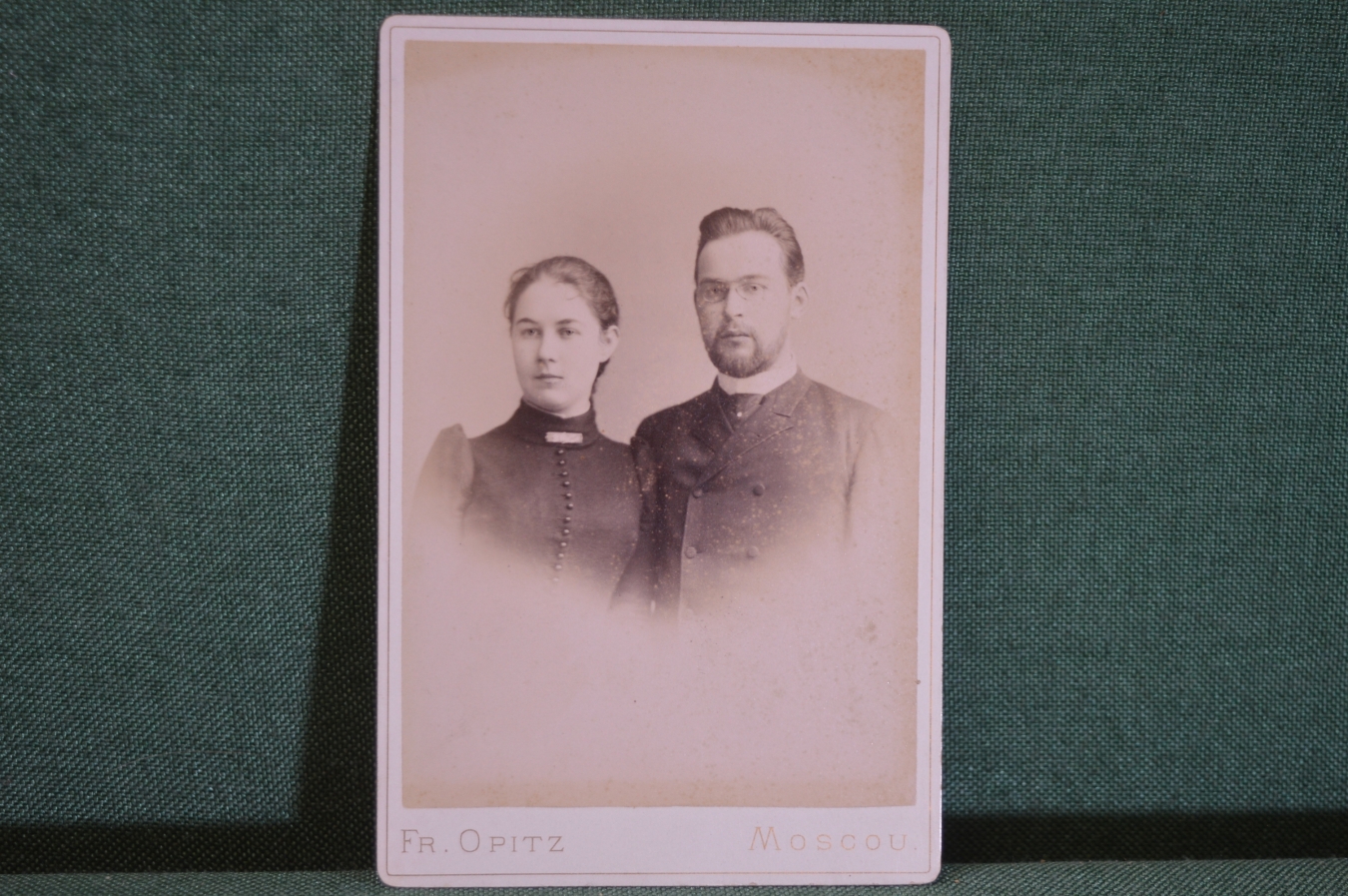 Фотография старинная "Семейная пара в темных одеждах". Fr. Opitz, Опитц. Москва.