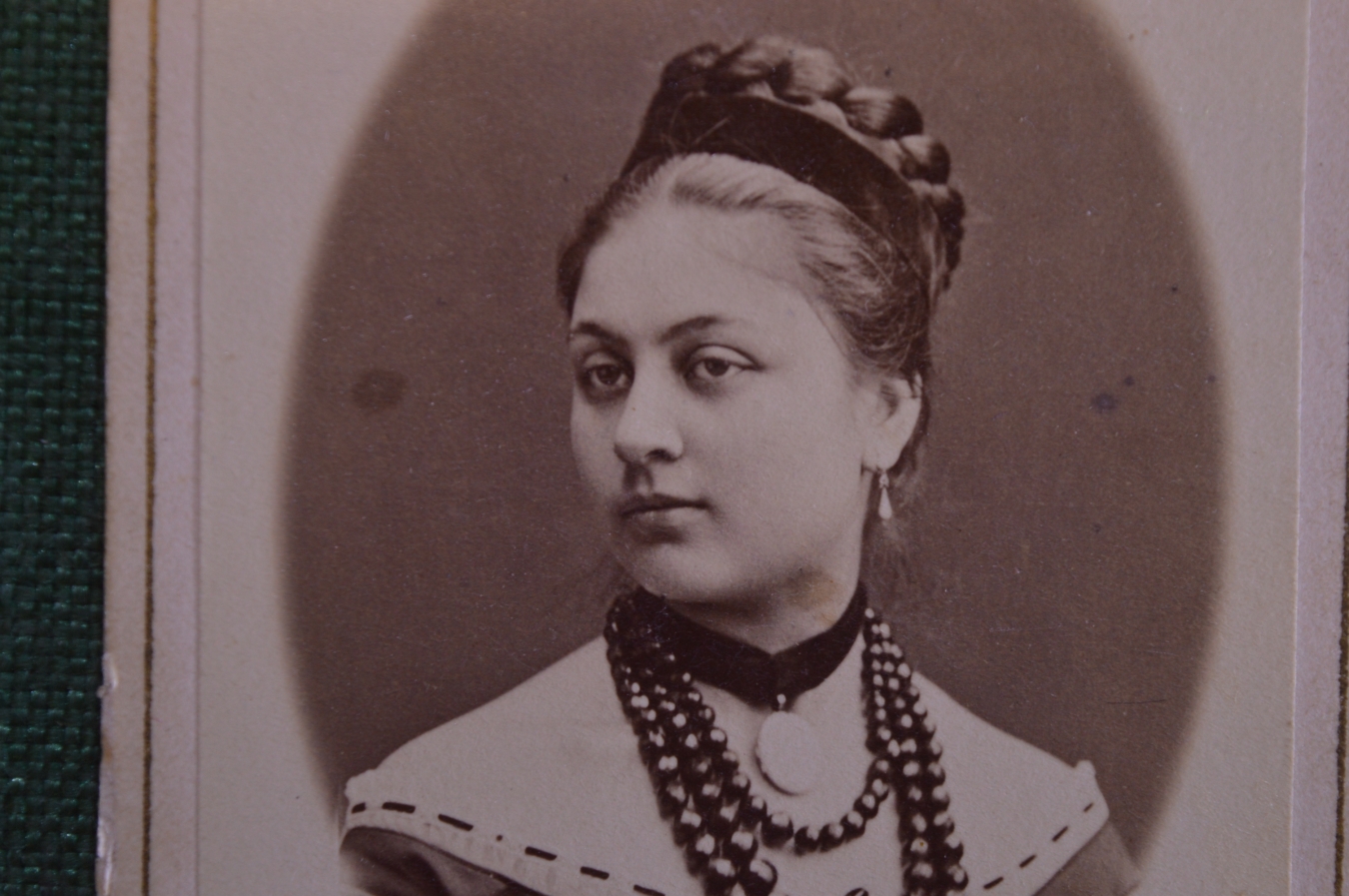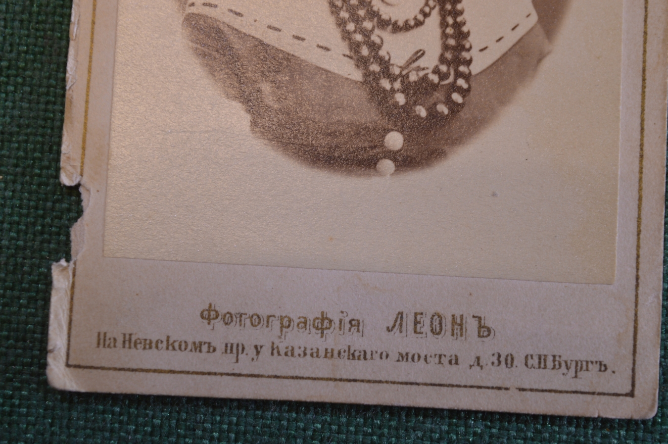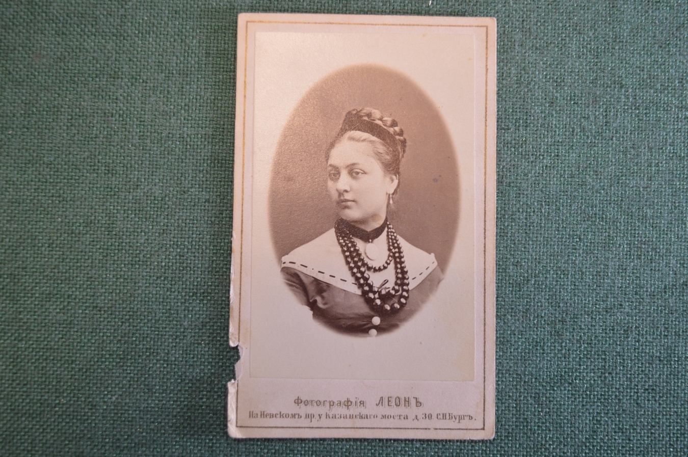 Фотография старинная "Девушка с массивными бусами". Фот. Леон. Санкт-Петербург.