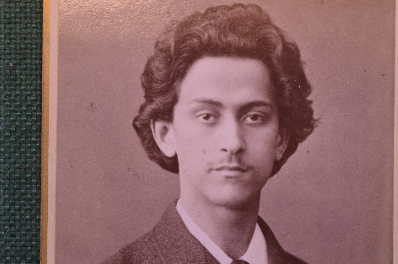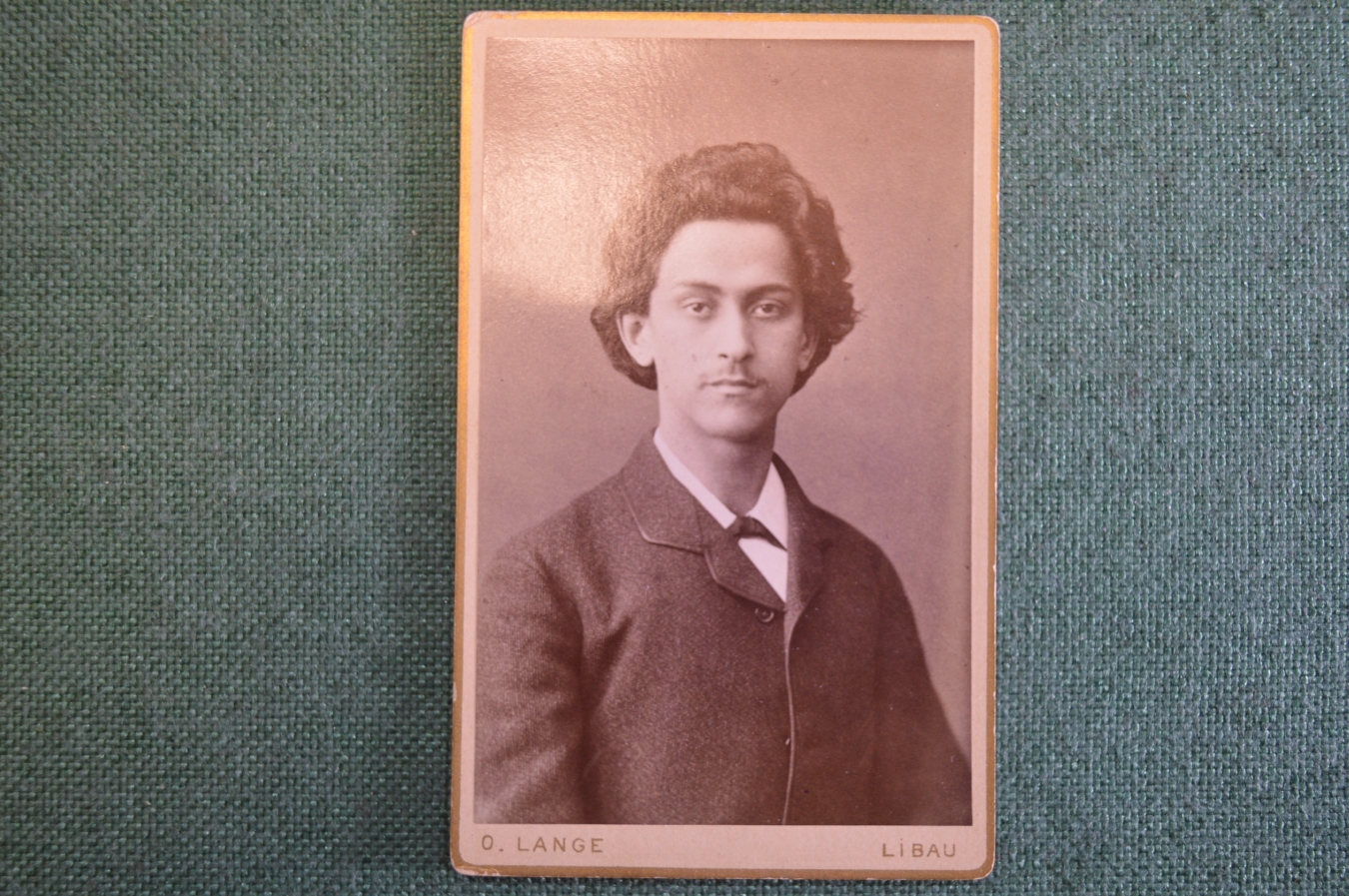 Фотография старинная "Молодой мужчина с пышной шевелюрой". Lange, Libau.
