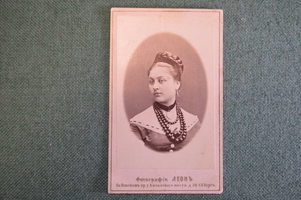 Фотография старинная "Девушка с массивными бусами". Фот. Леон. Санкт-Петербург. #2