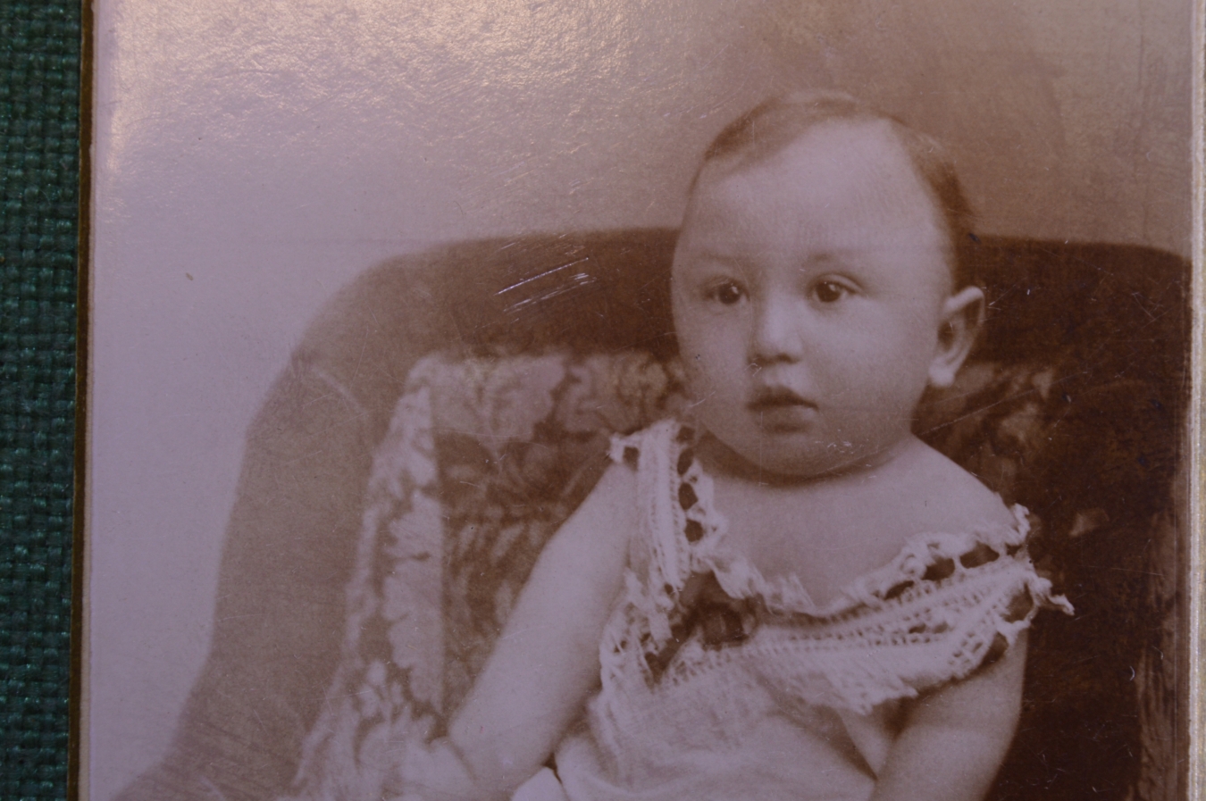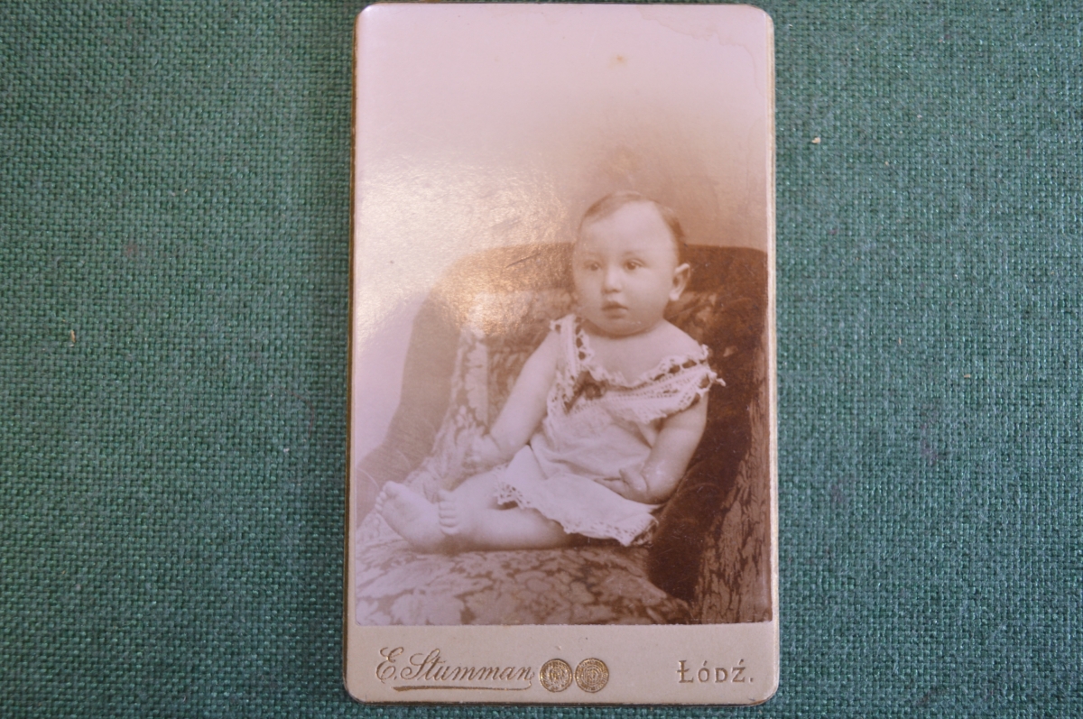 Фотография старинная "Малышка в платьице". Summan, Lodz.